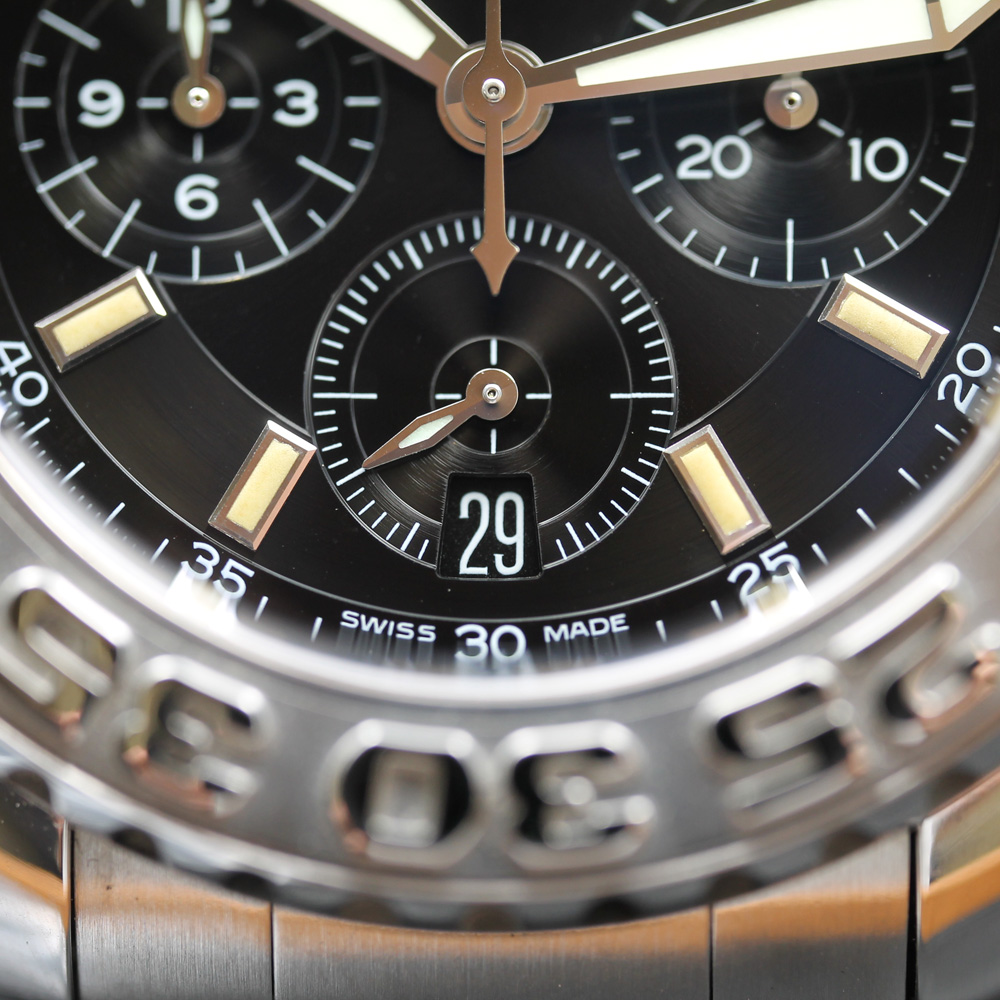 Integra un movimento automatico con cronografo flyback.