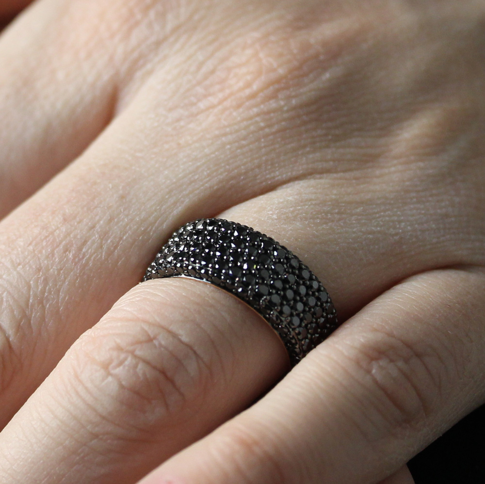 Anello a fascia in oro rosa 18K con diamanti neri taglio brillante (ct 1,82)