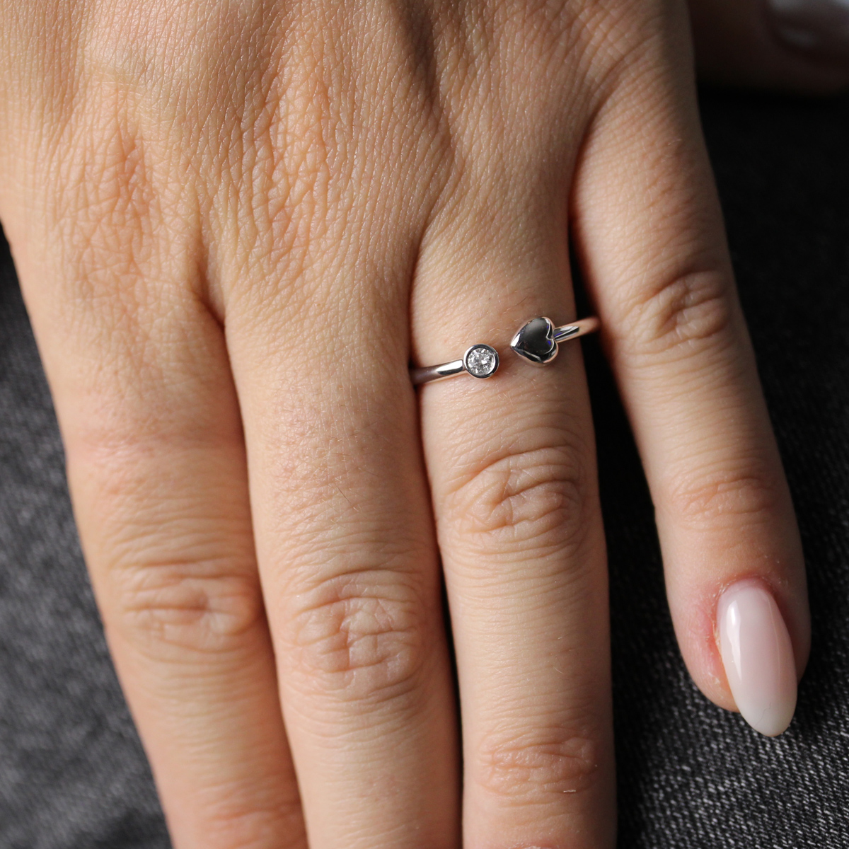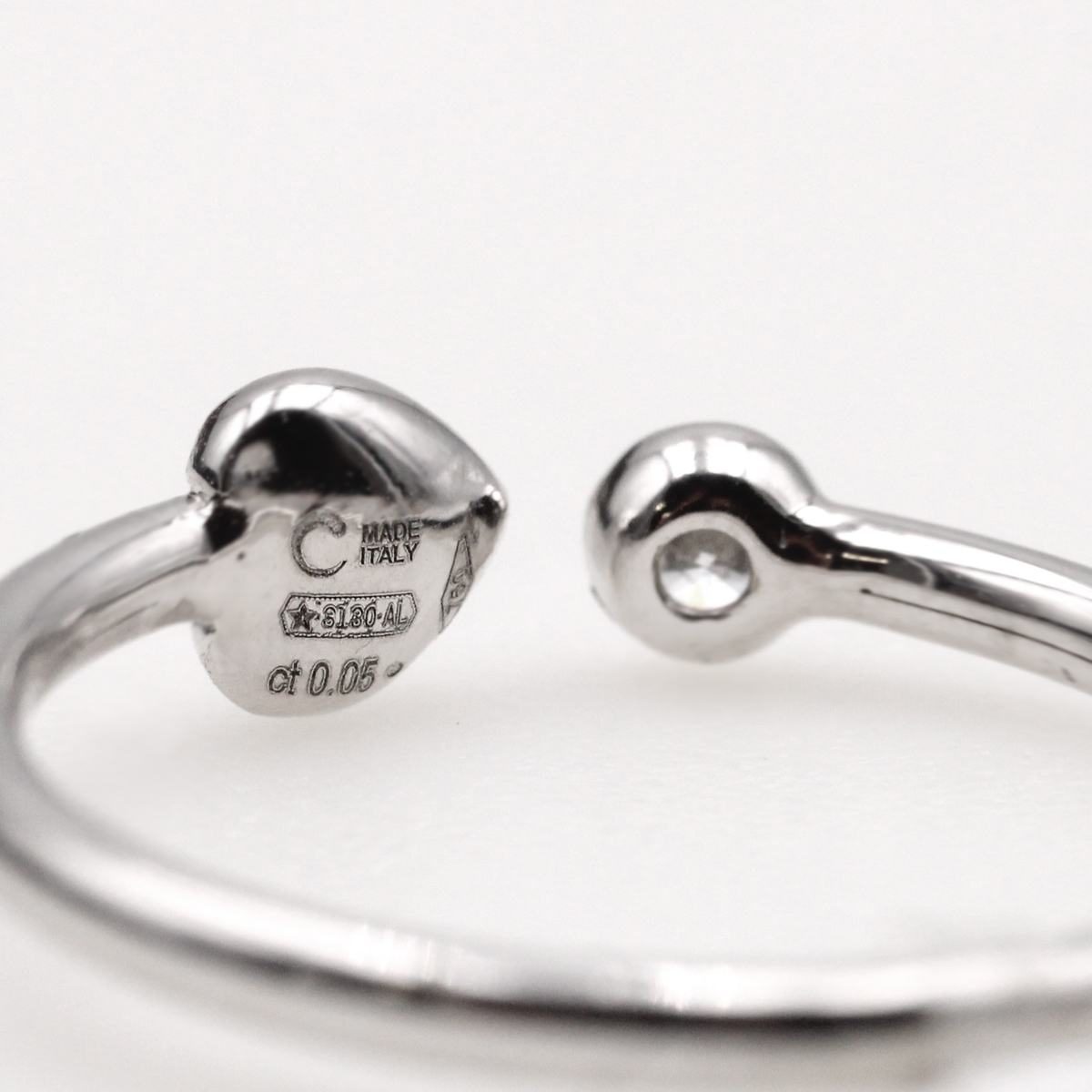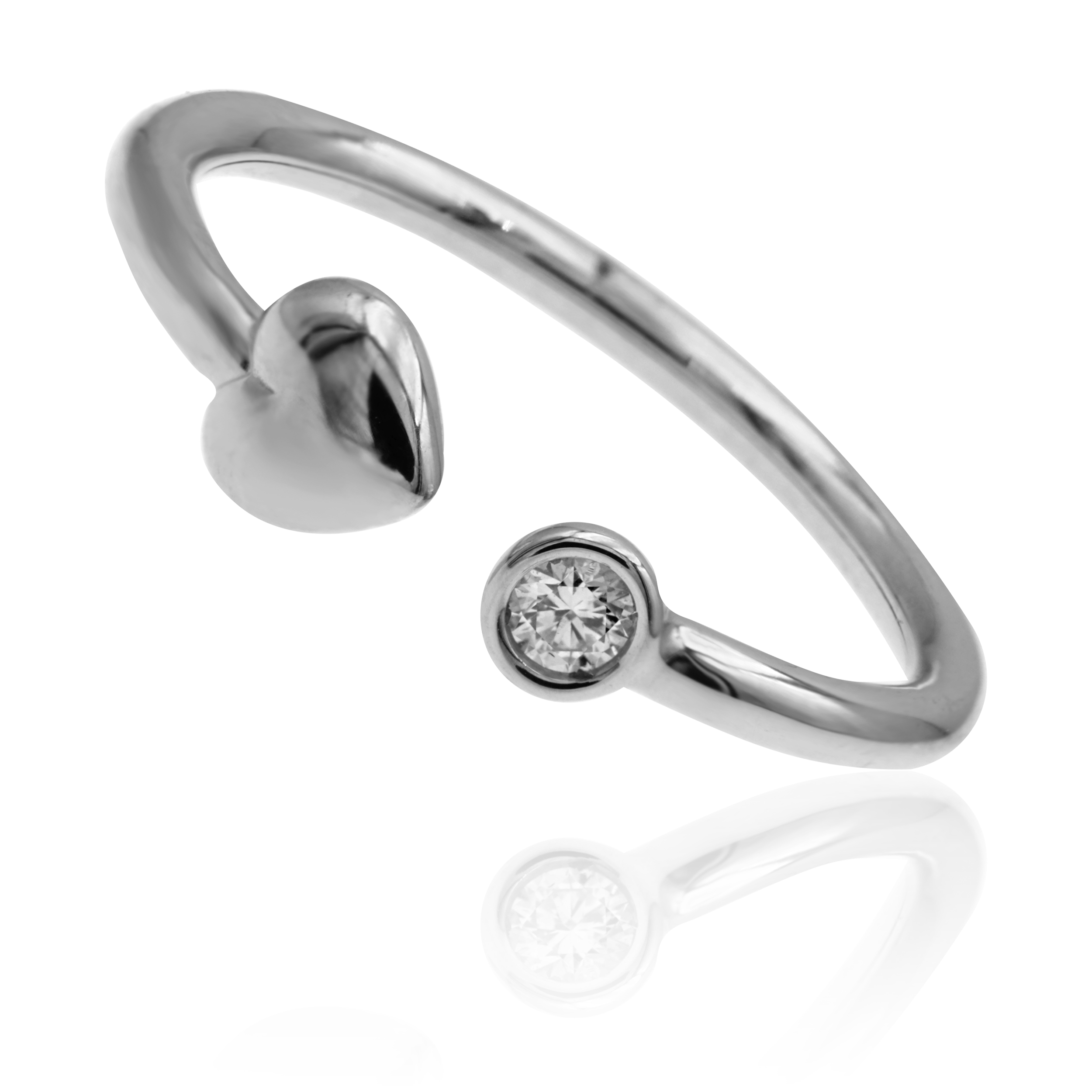 Anello aperto in oro bianco 18K con cuore e diamante taglio brillante (ct 0,05 - G - VS)