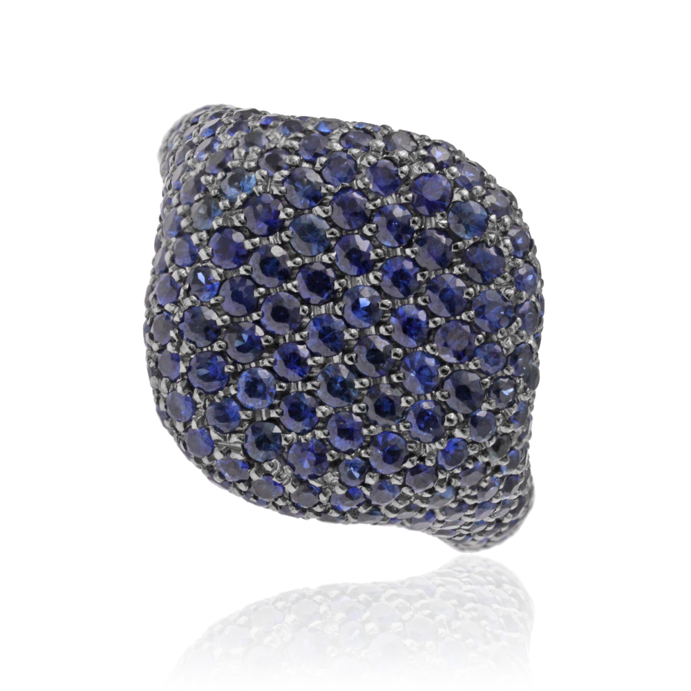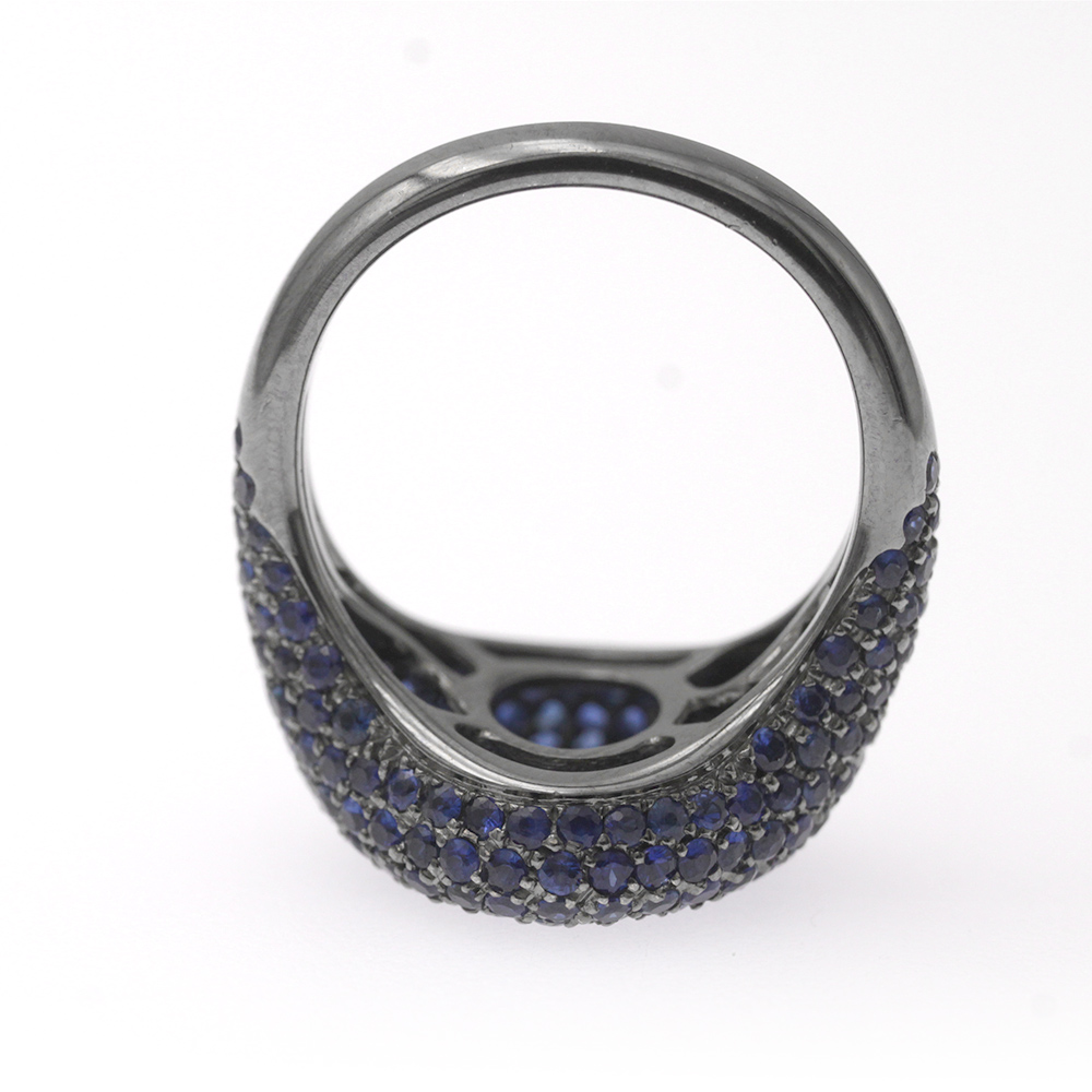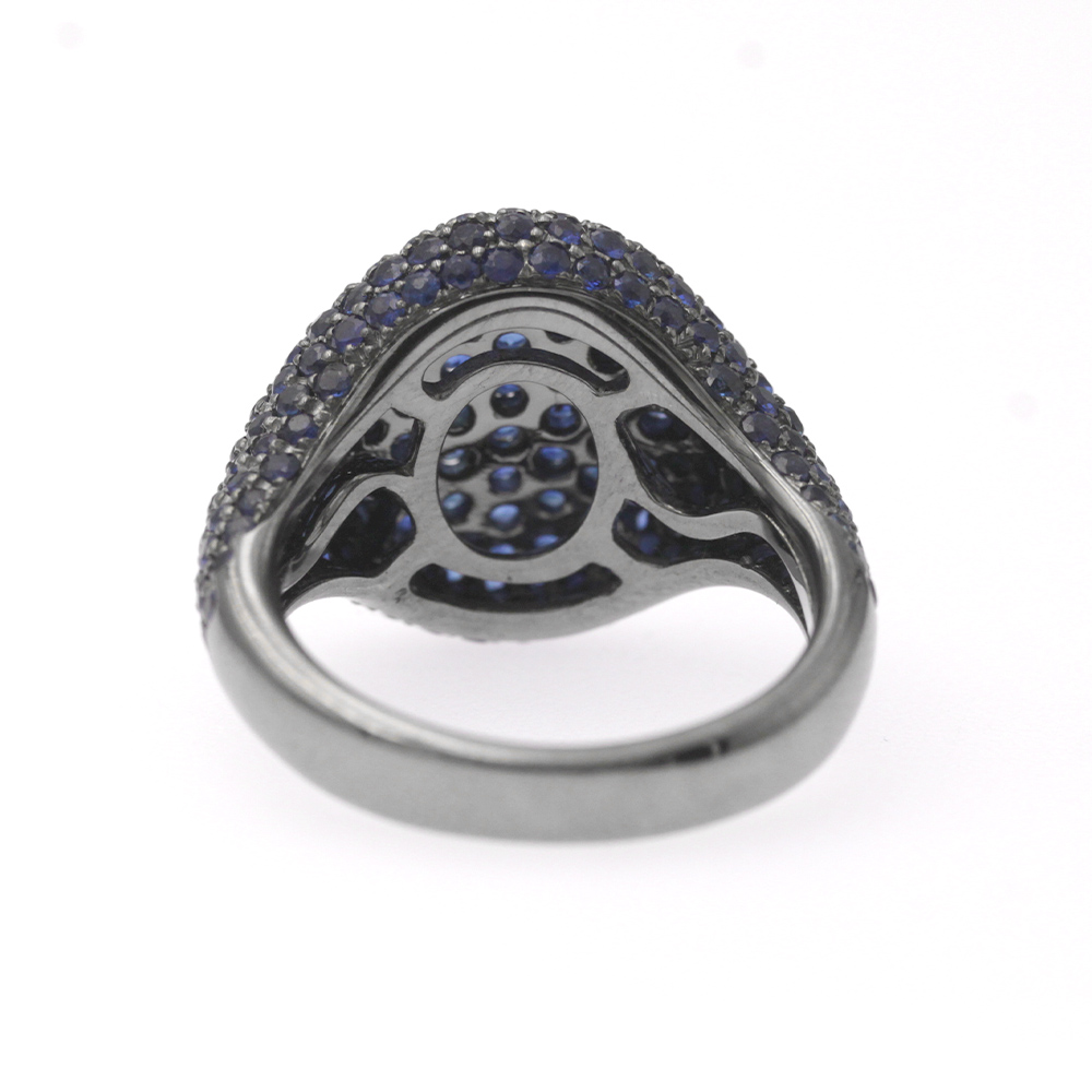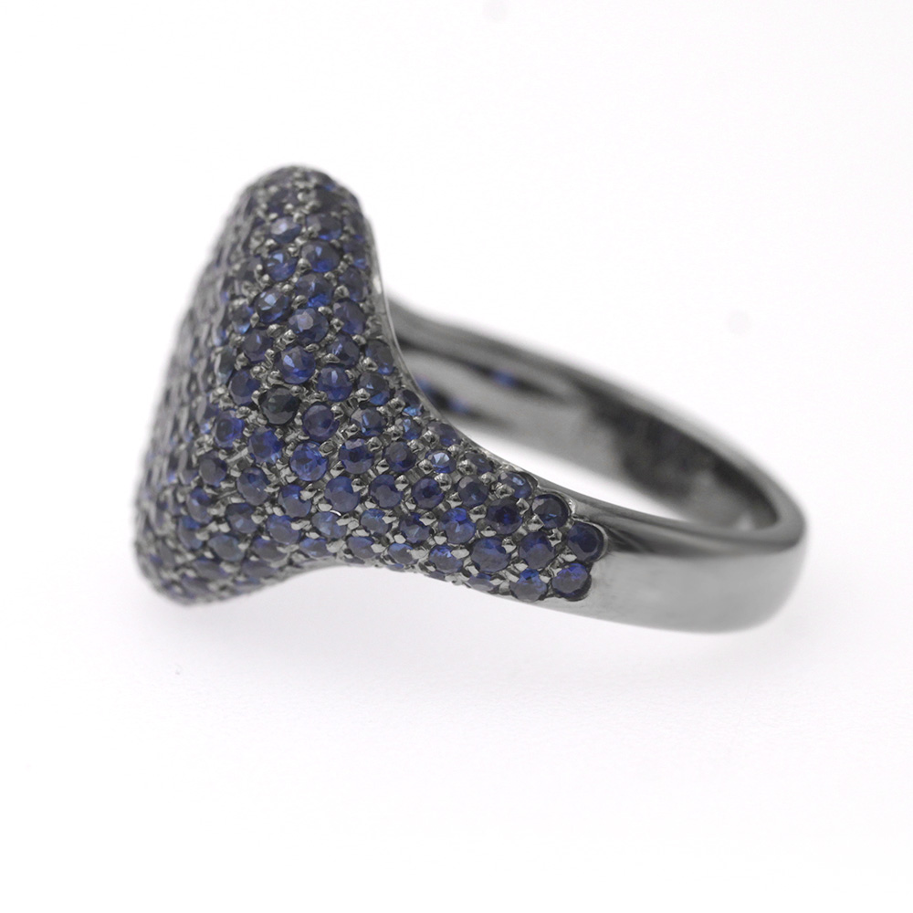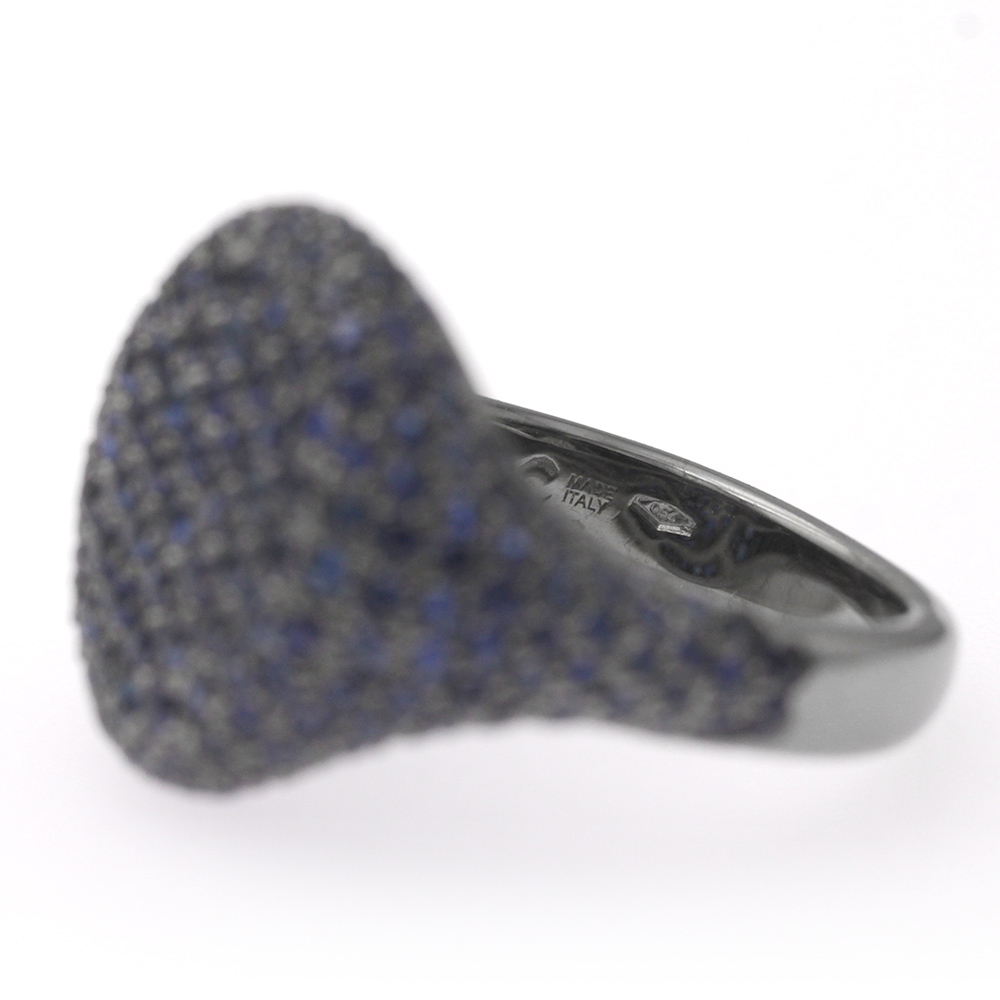 Anello chevalier da mignolo in oro bianco rodiato nero con 210 zaffiri taglio brillante (ct 2,20)