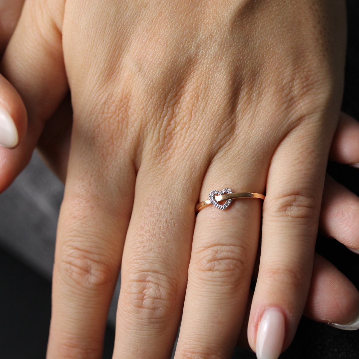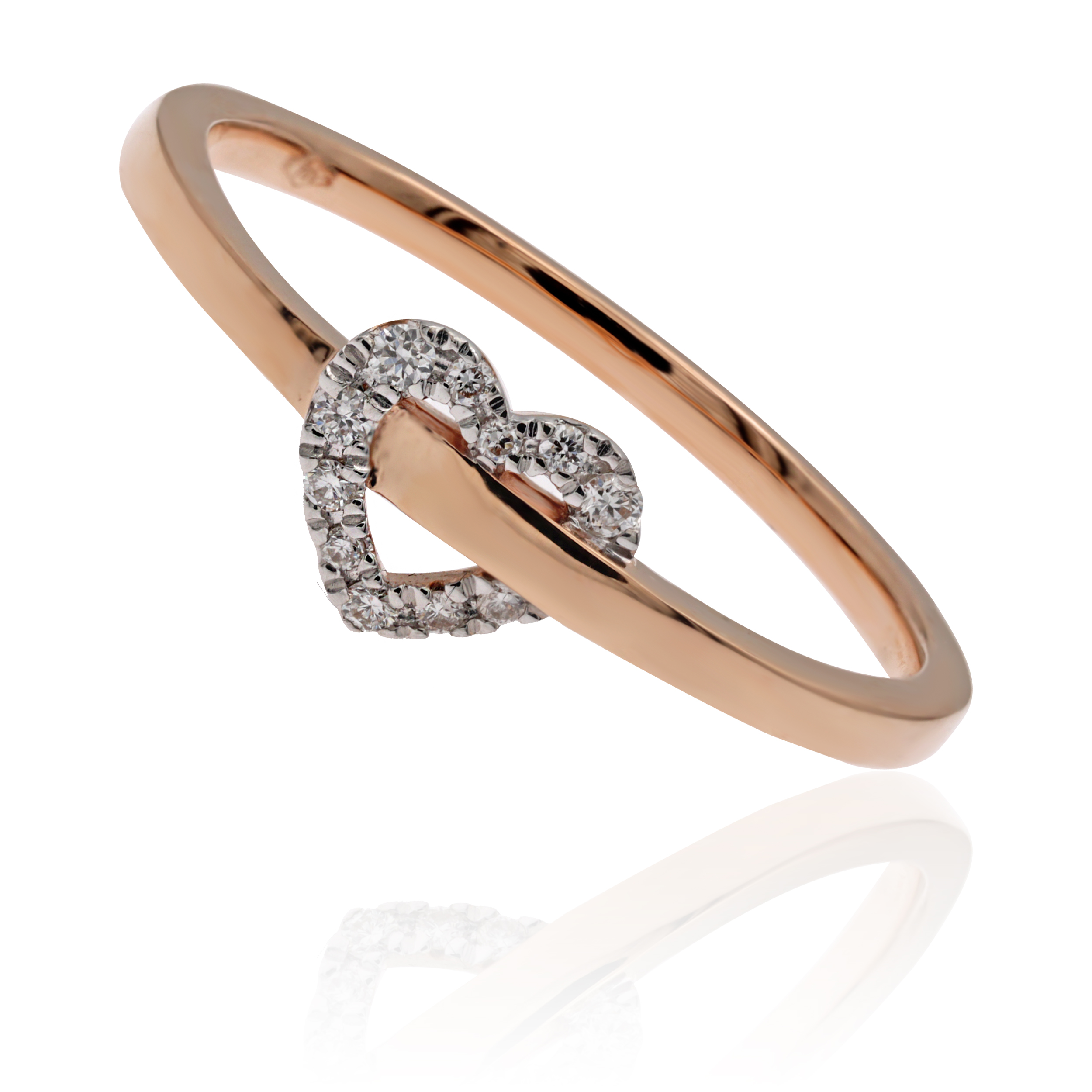 Anello con cuore in oro rosa e diamanti (ct 0,05)