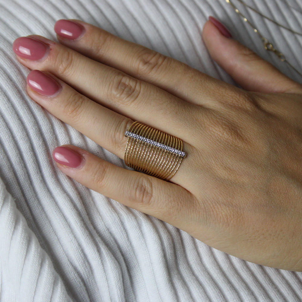 Anello Diva 21 file - barretta con diamanti - in oro giallo 18K