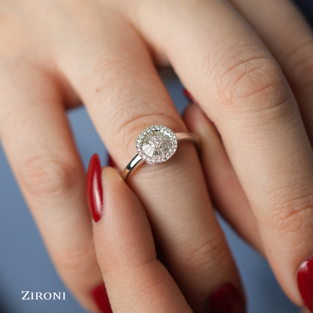 Anello fantasia in oro bianco 18K e centrale con diamanti taglio baguette e taglio brillante (0,25 ct - G/H - SI)