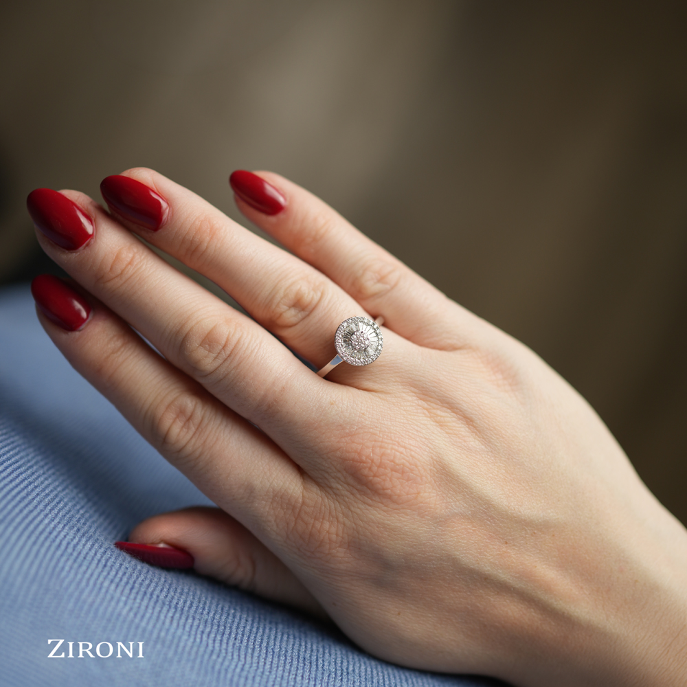 Anello fantasia in oro bianco 18K con diamanti taglio brillante e taglio baguette (0,39 ct - G/H - SI)