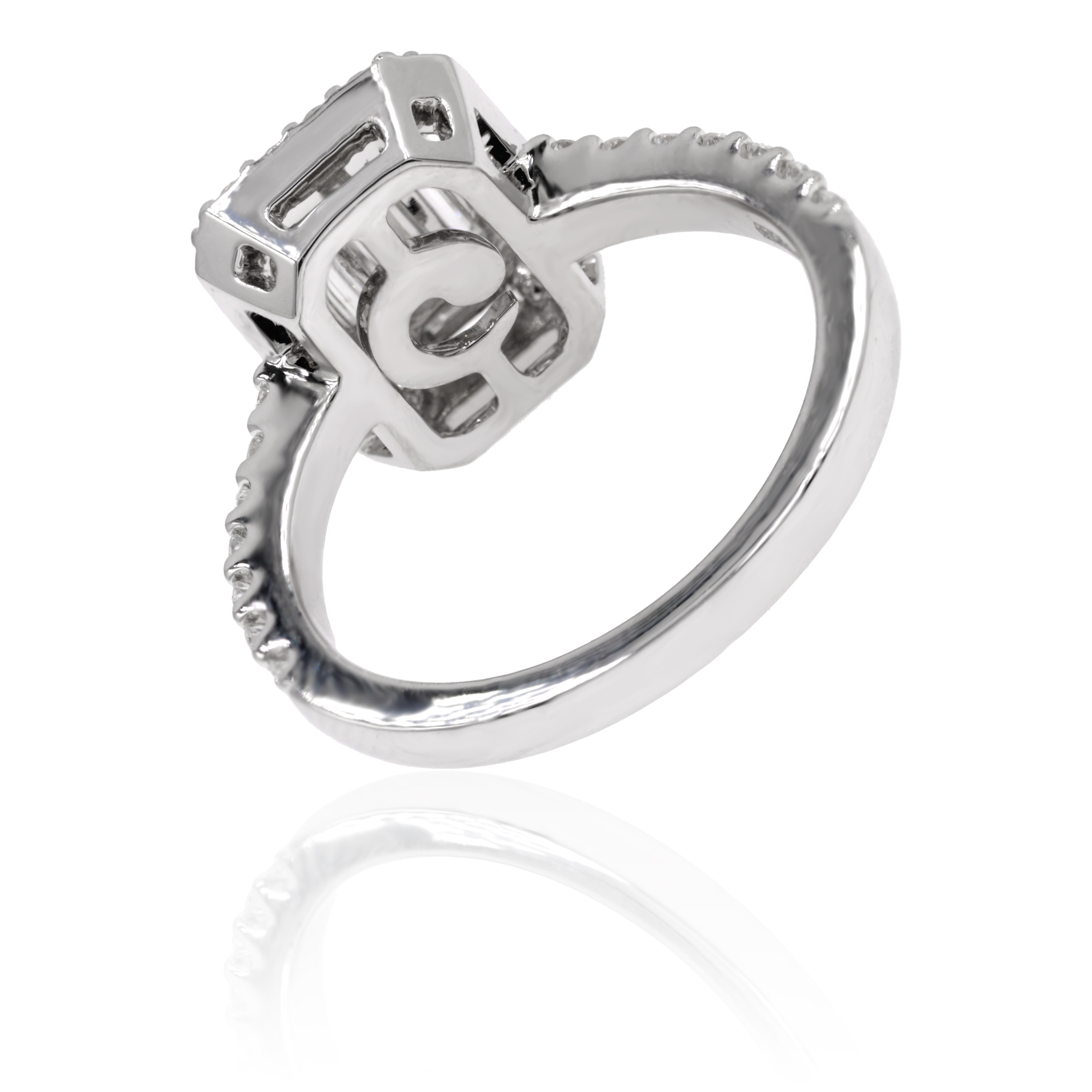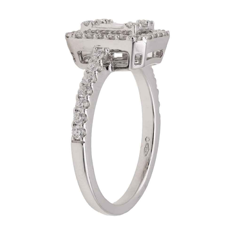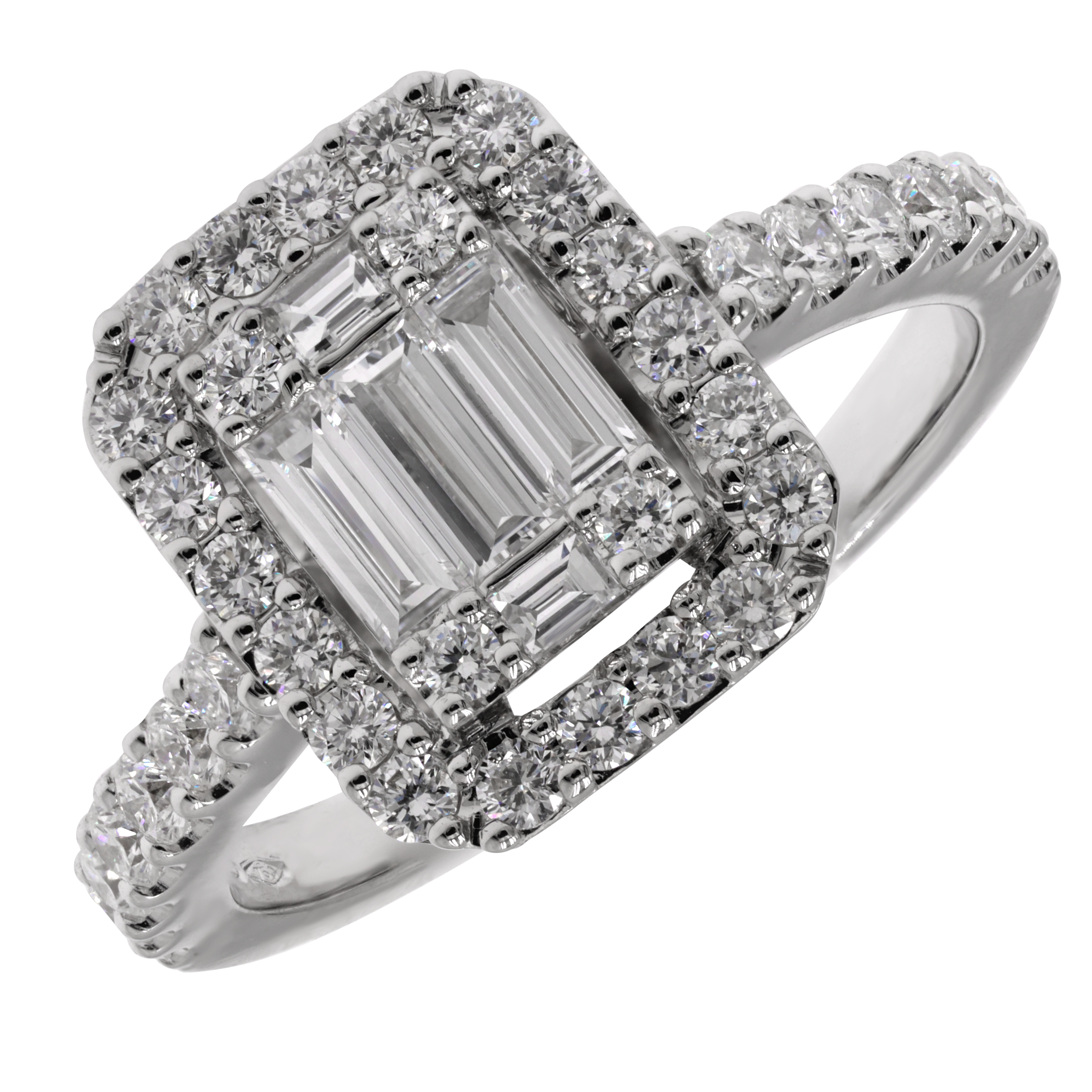 Anello "illusione" in oro bianco 18K con 40 diamanti taglio brillante (ct 0,50 - G - SI) e 5 diamanti taglio baguette (ct 0,28 - G - VS)