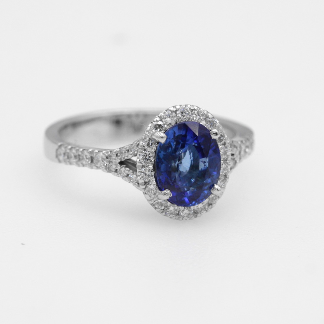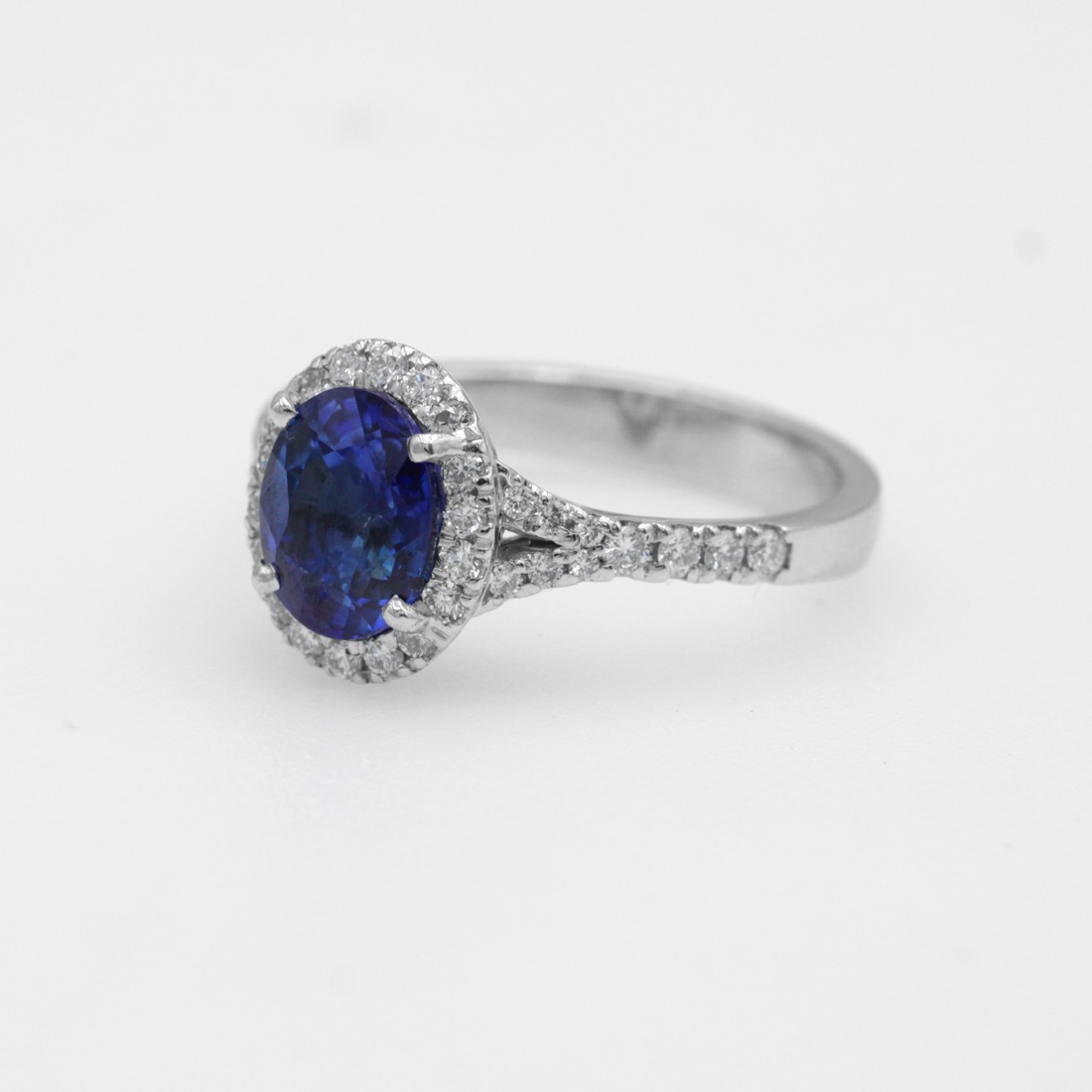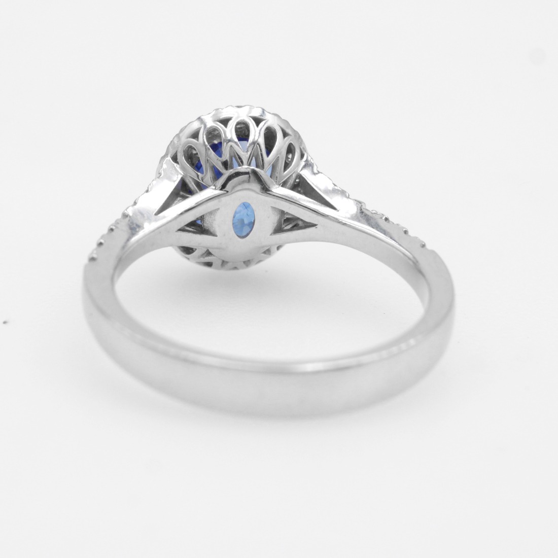 Anello in oro bianco 18K con zaffiro taglio ovale (ct 2,21) e diamanti taglio brillante (ct 0.41 - G - SI)