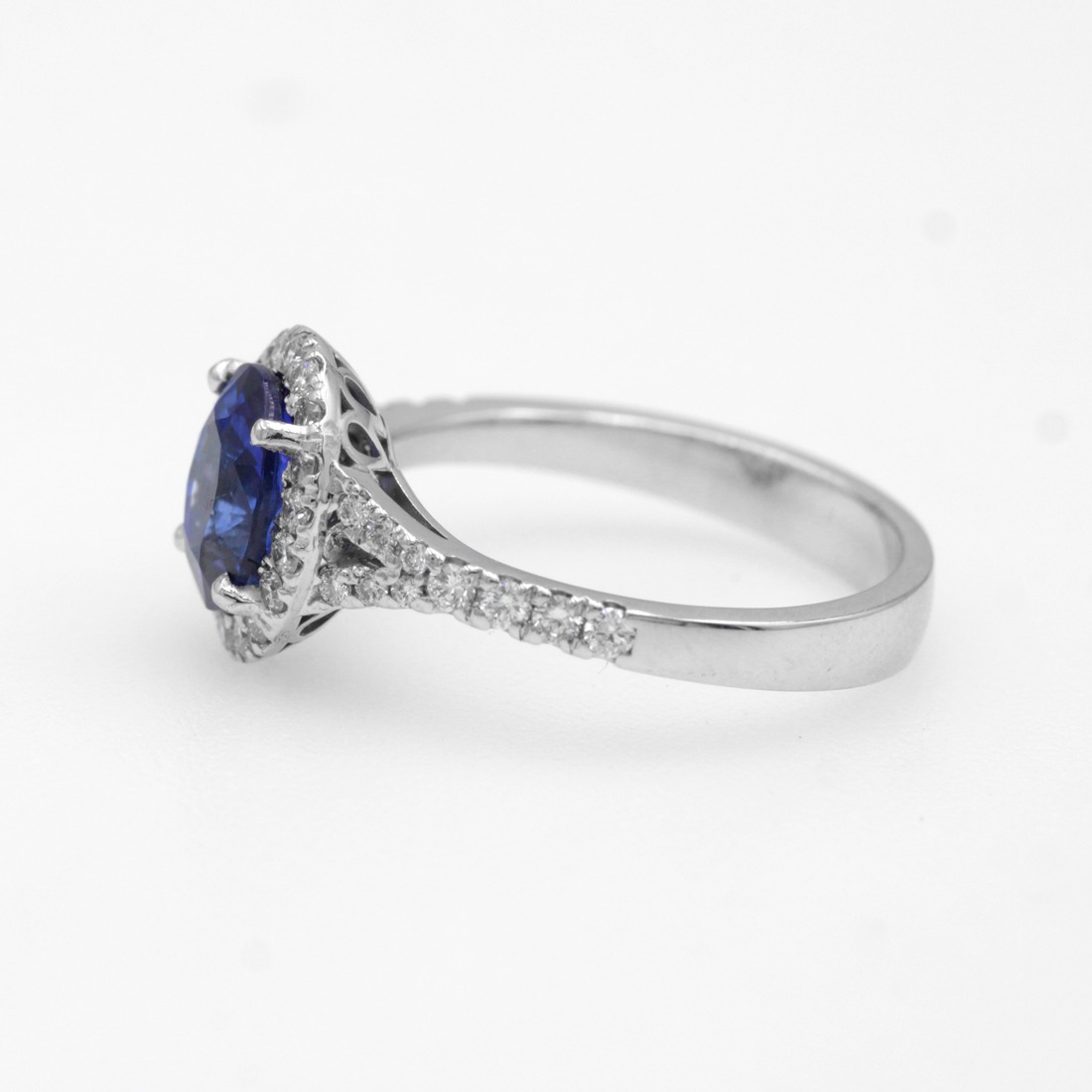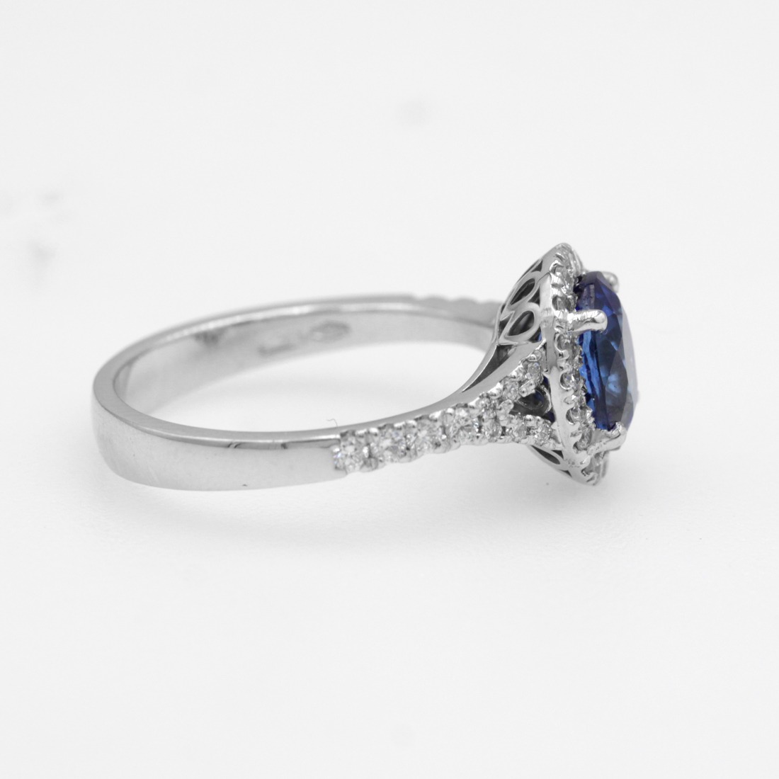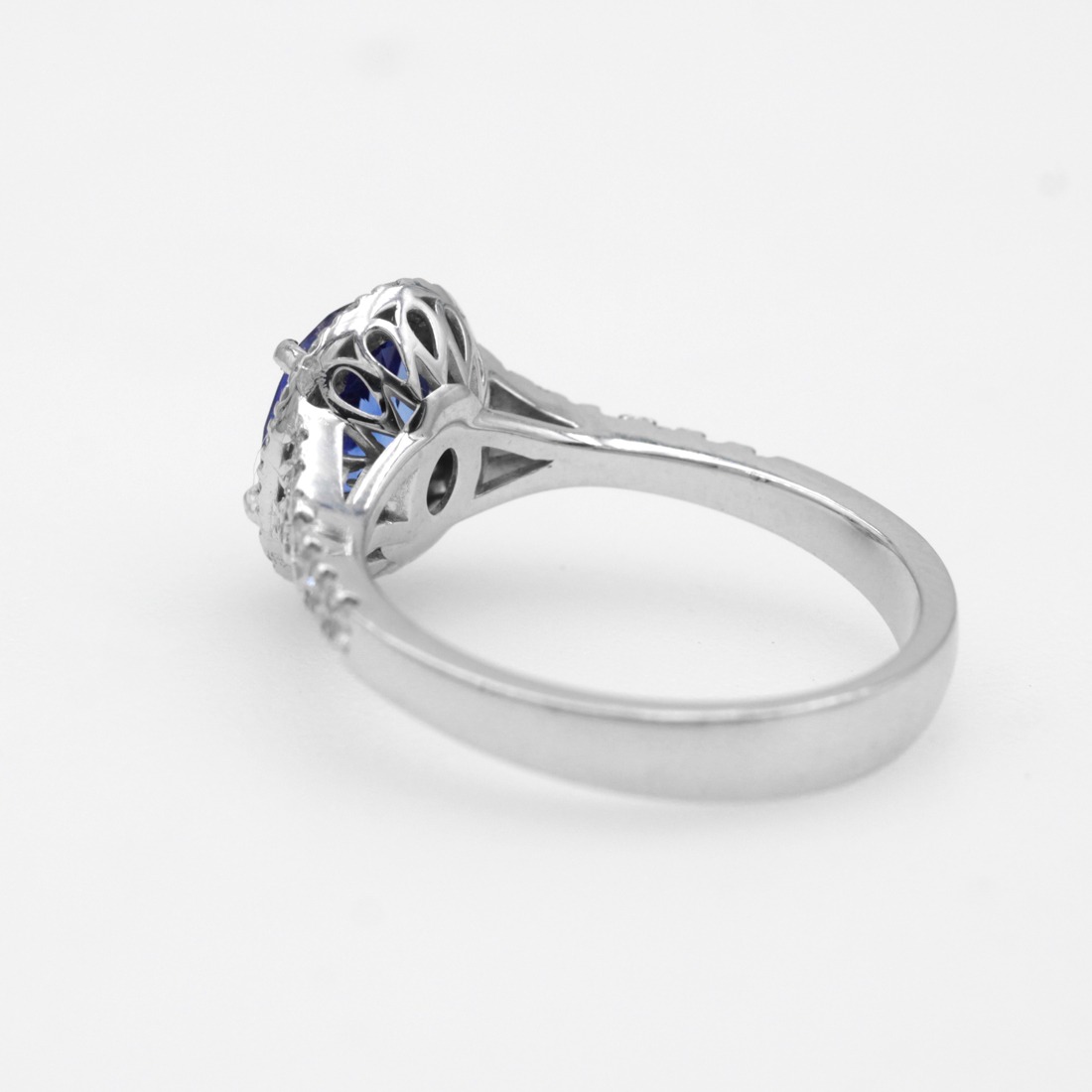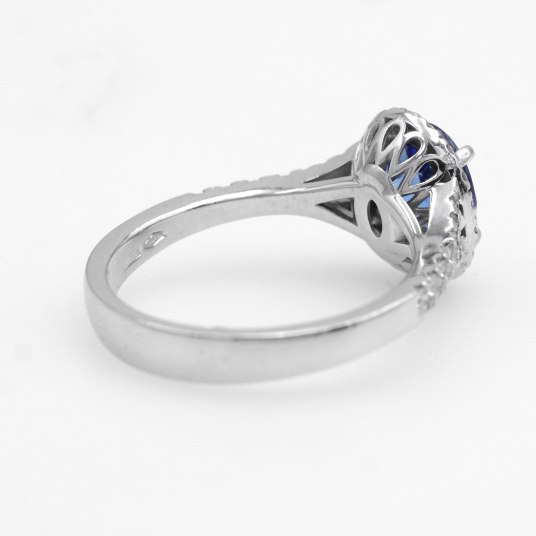 Anello in oro bianco 18K con zaffiro taglio ovale (ct 2,21) e diamanti taglio brillante (ct 0.41 - G - SI)