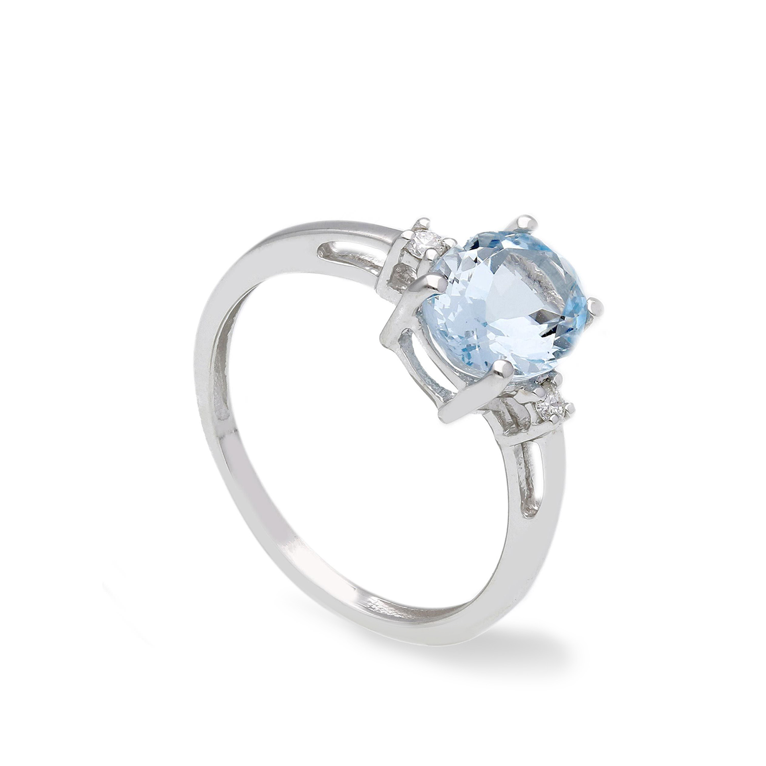 Anello in oro bianco 18K con acquamarina taglio ovale (1,65 ct) e diamanti taglio brillante (0,04 ct - G/H - SI)