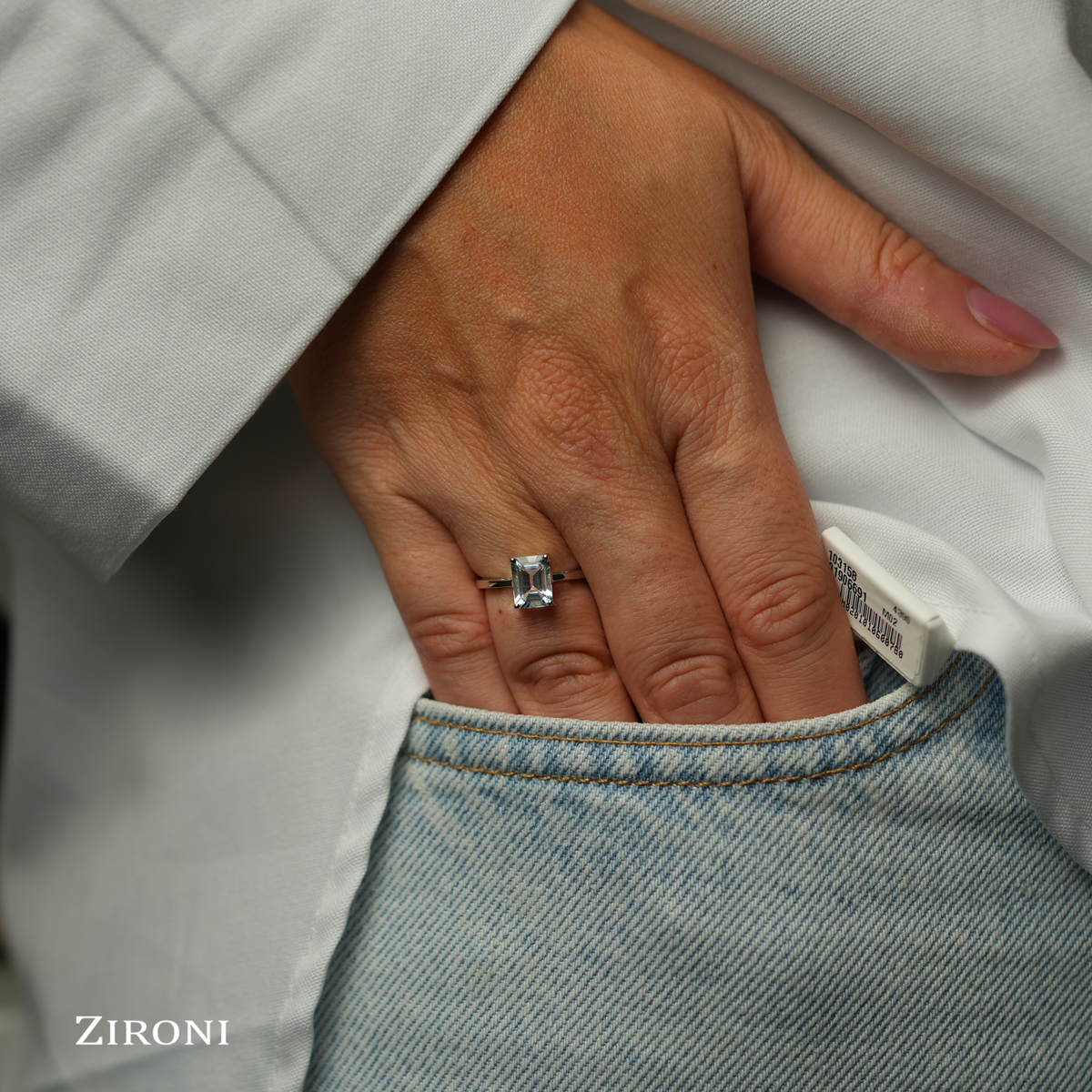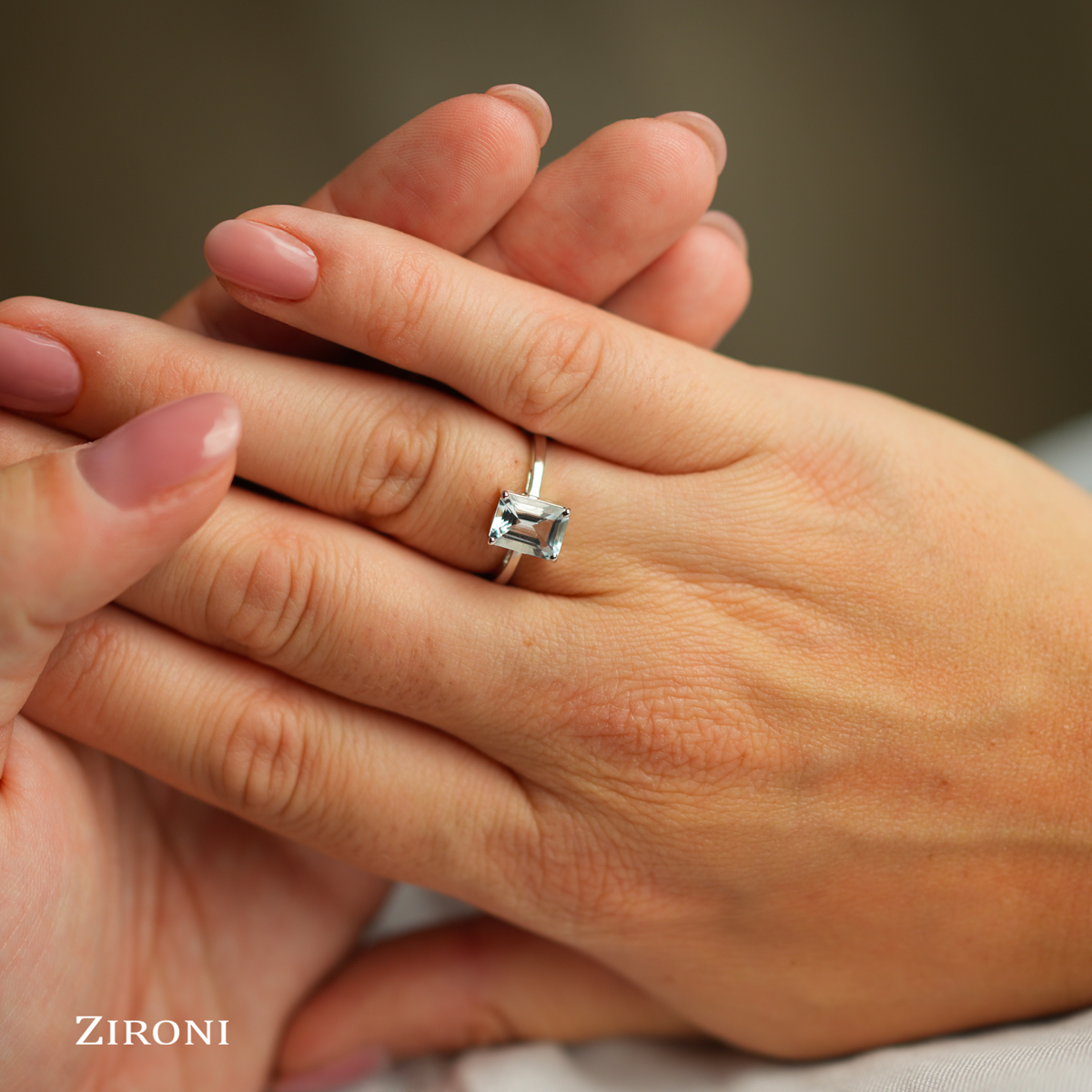 Anello in oro bianco 18K con acquamarina taglio smeraldo (ct 1,45)