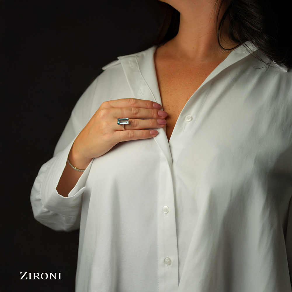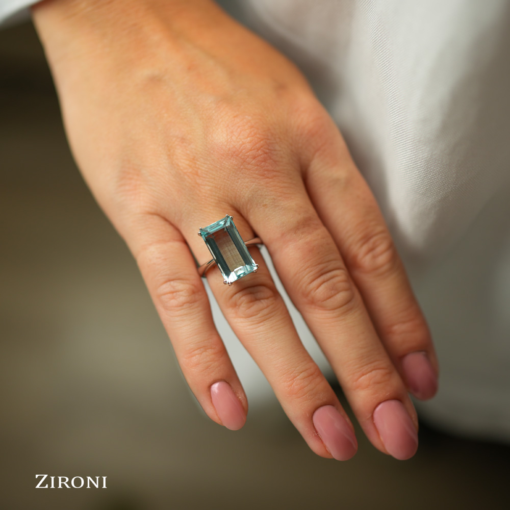 Anello in oro bianco 18K con acquamarina naturale taglio smeraldo (ct 5.00)