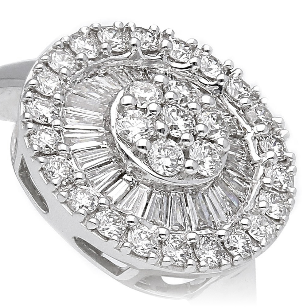 Anello in oro bianco 18K con diamanti taglio brillante e taglio baguette (0,75 ct - G/H - SI)