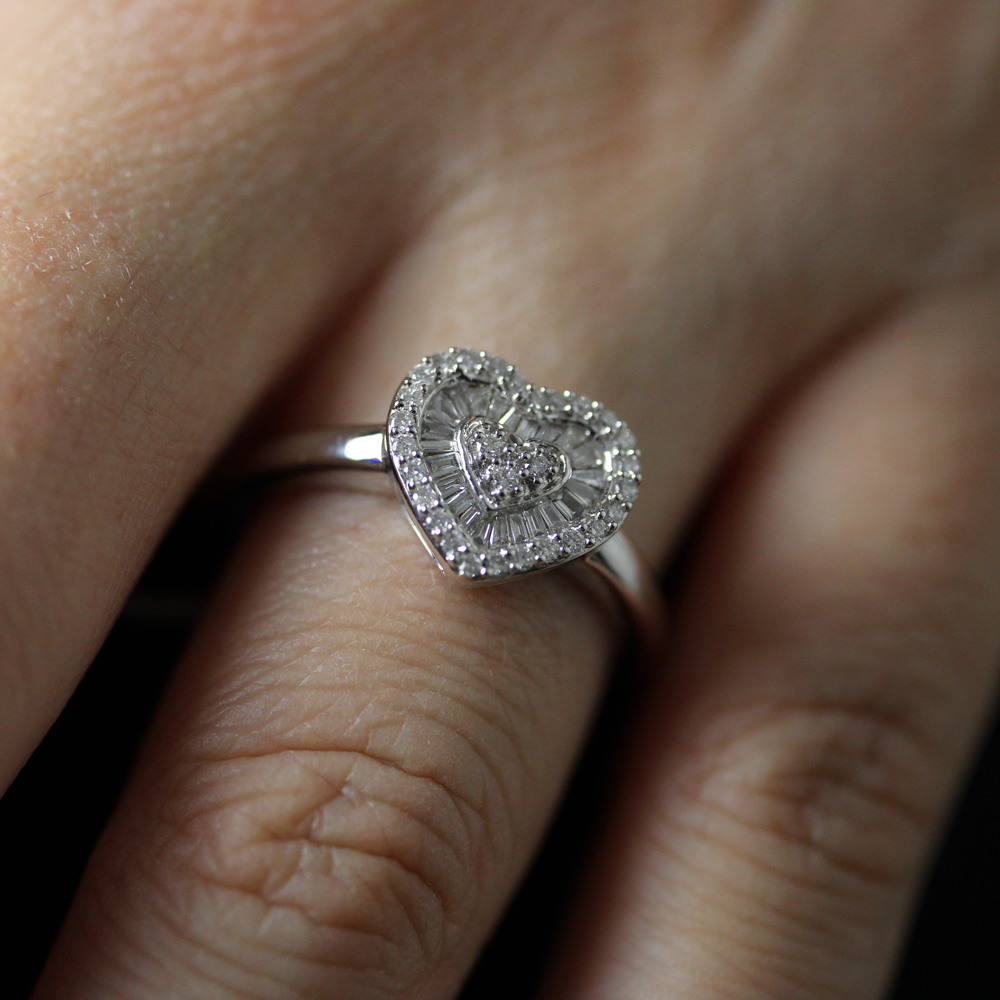 Anello in oro bianco 18K con diamanti taglio brillante e taglio baguette (0,25 ct - G/H - SI)