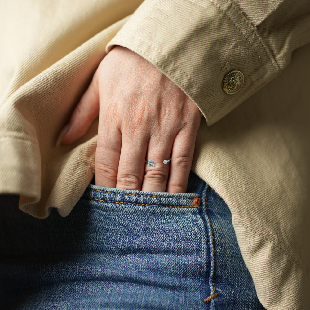 Anello in oro bianco con iniziale e diamanti