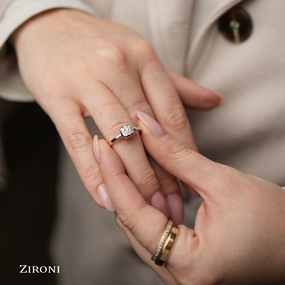 Anello in oro bianco con pavè di diamanti (ct 0,15)