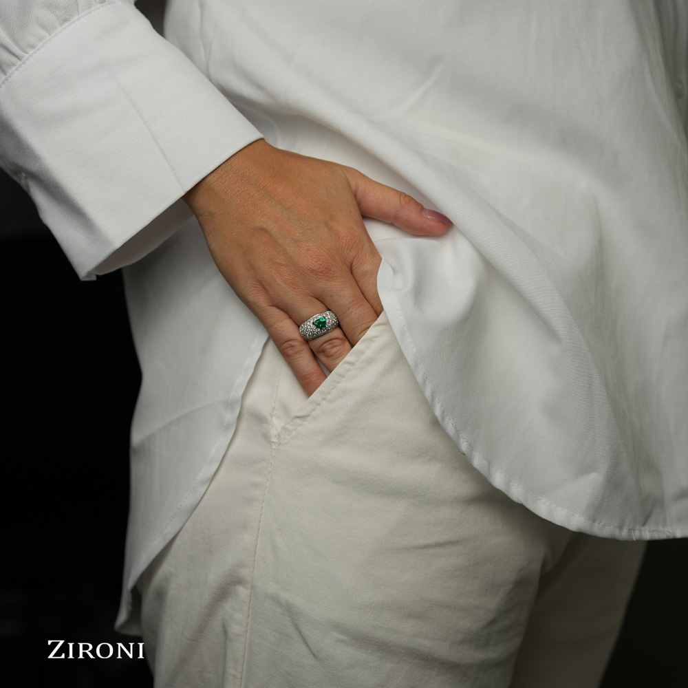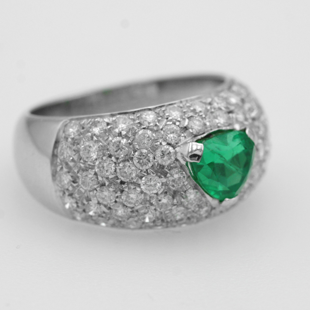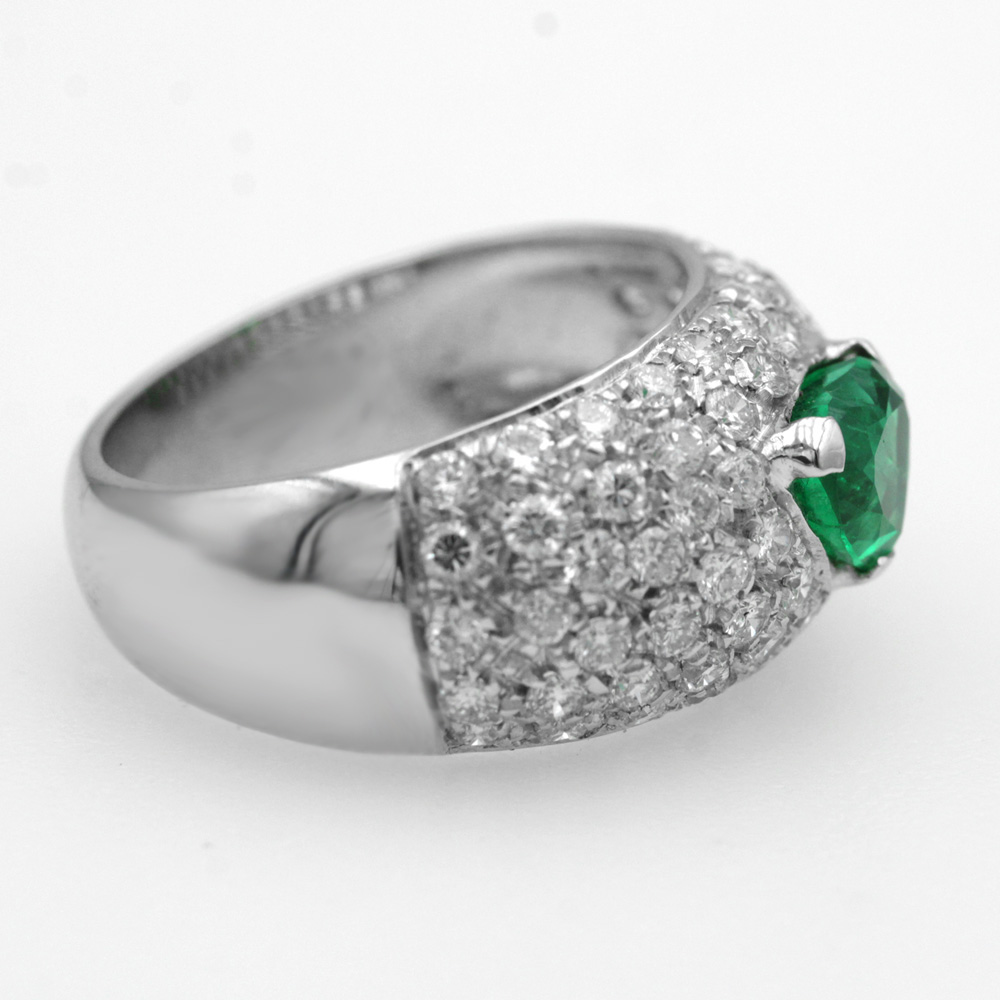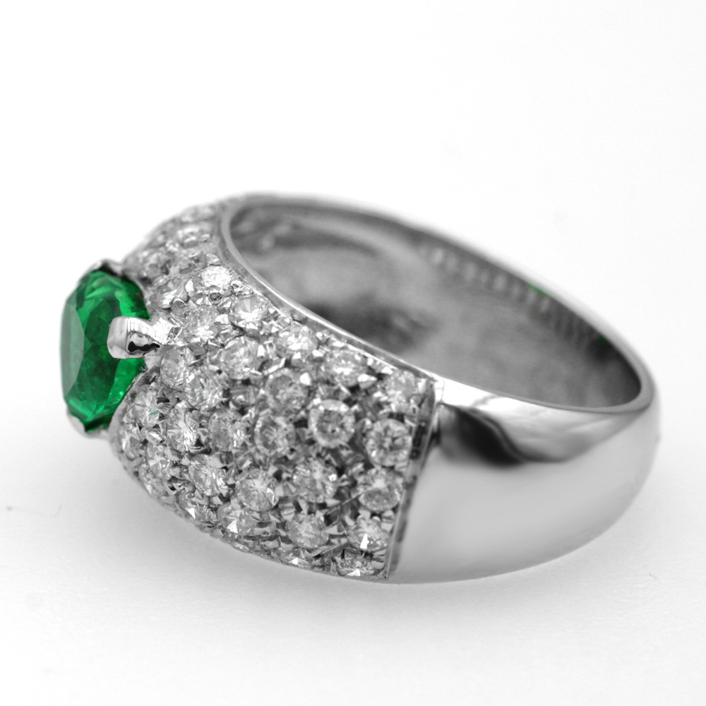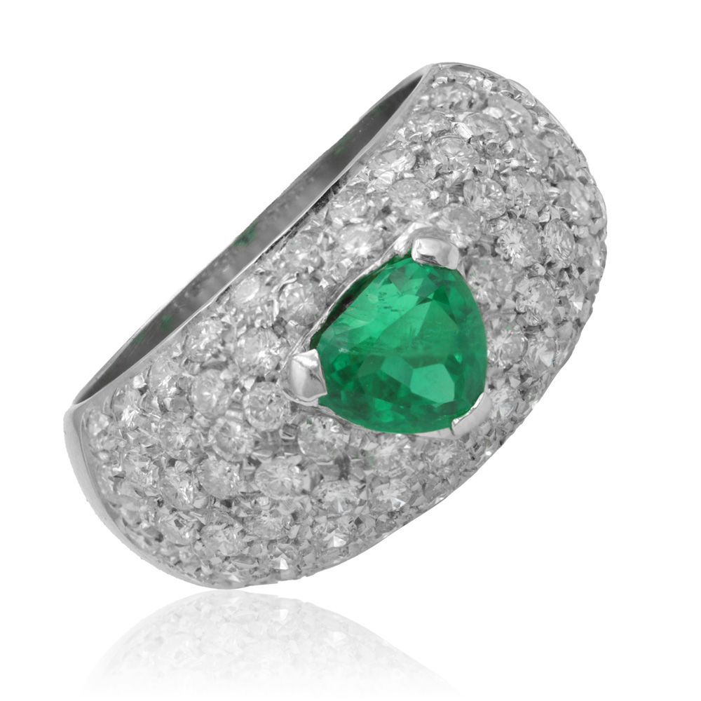 Anello in oro bianco con smeraldo (0,70 ct) e diamanti (1,15 ct)