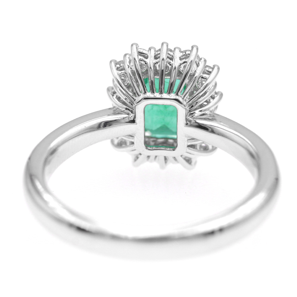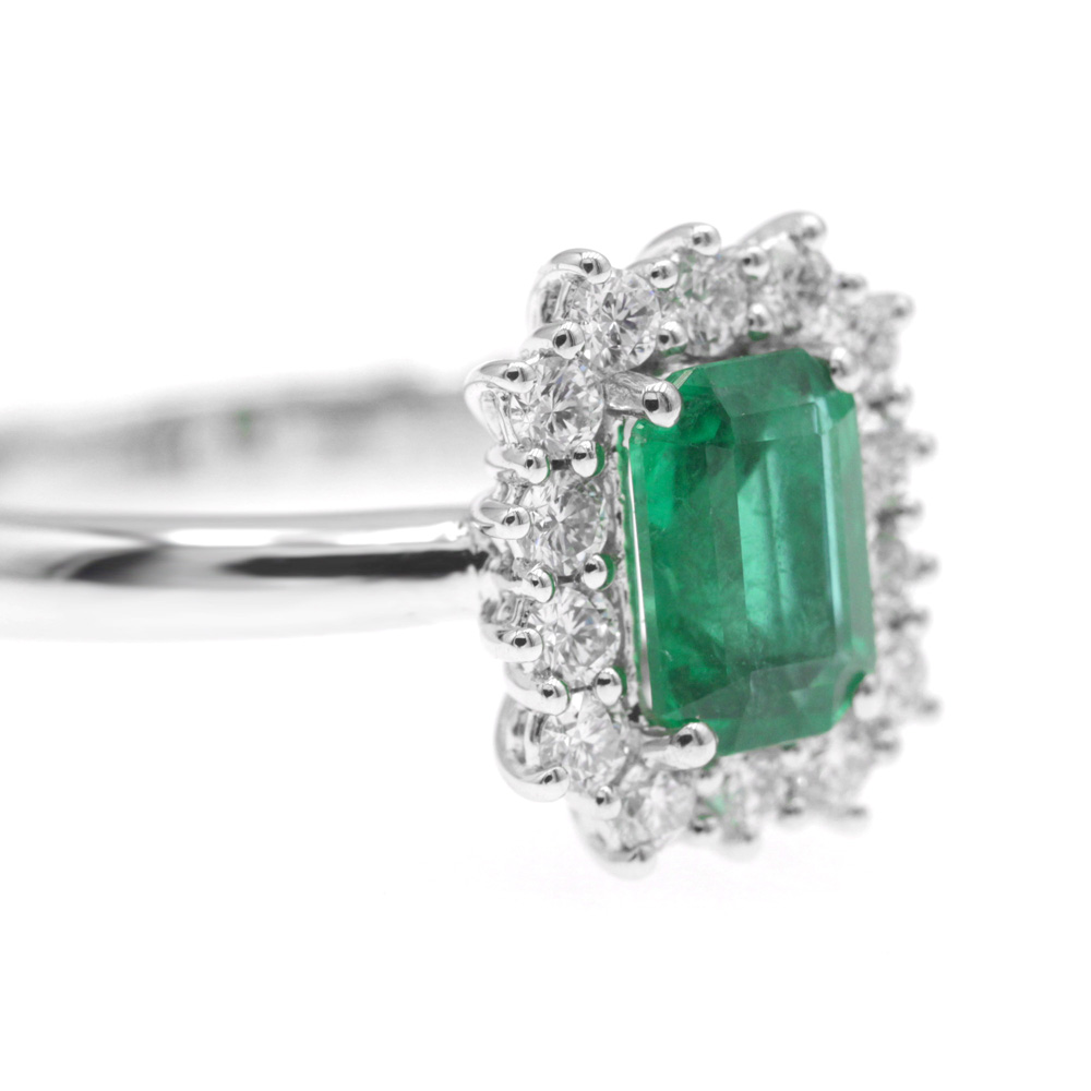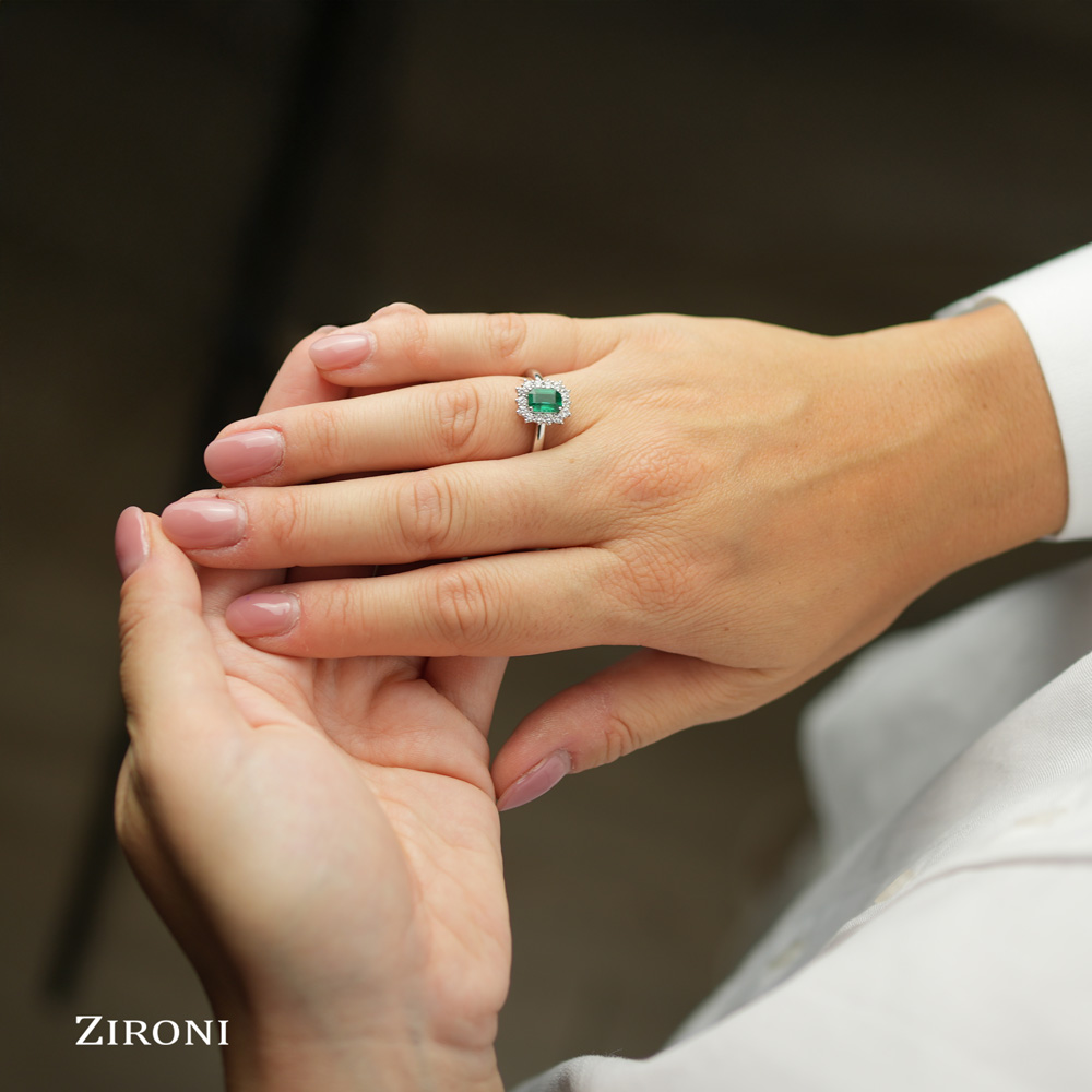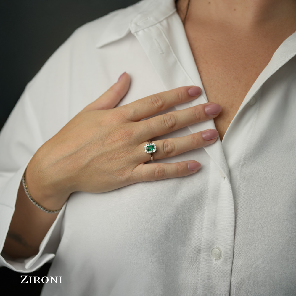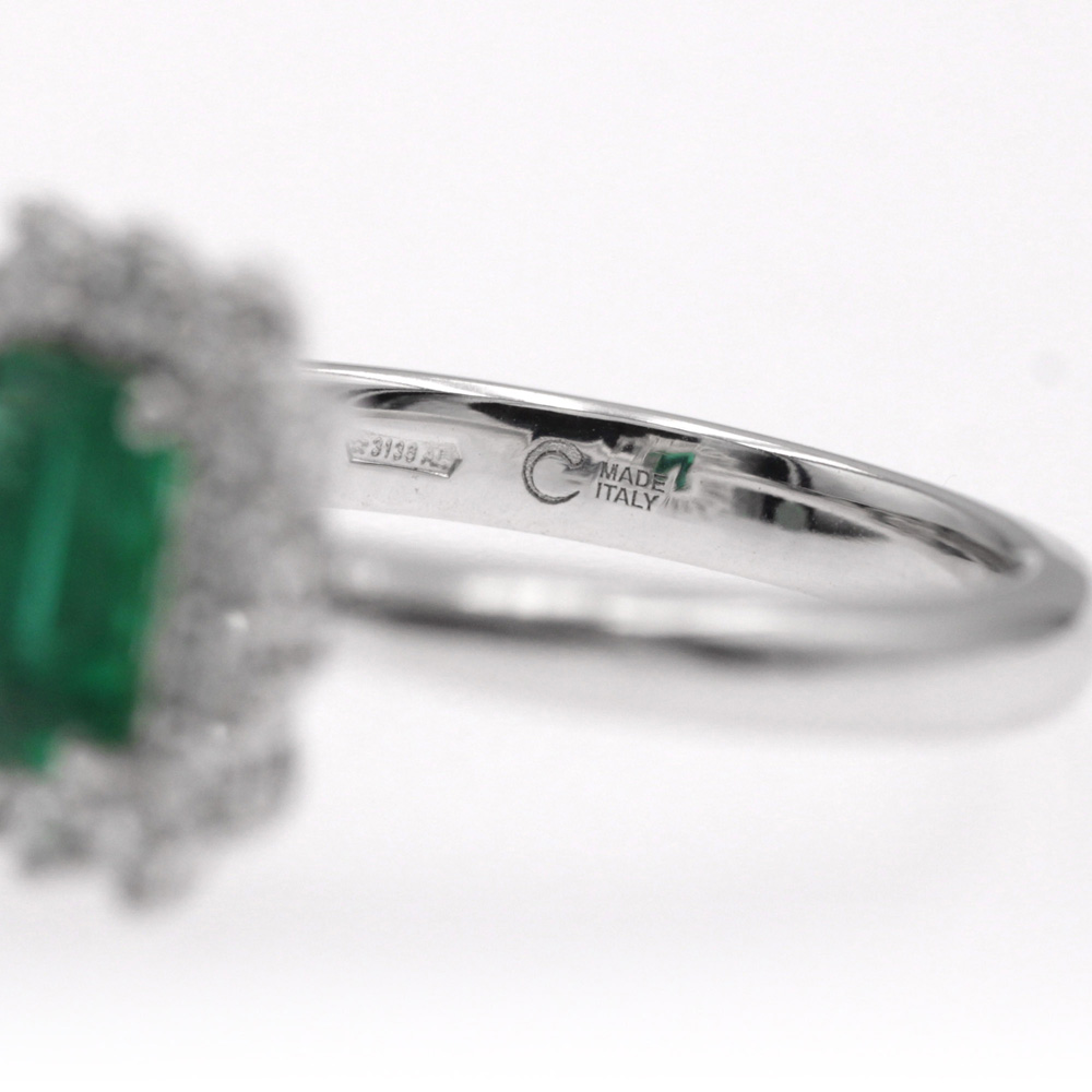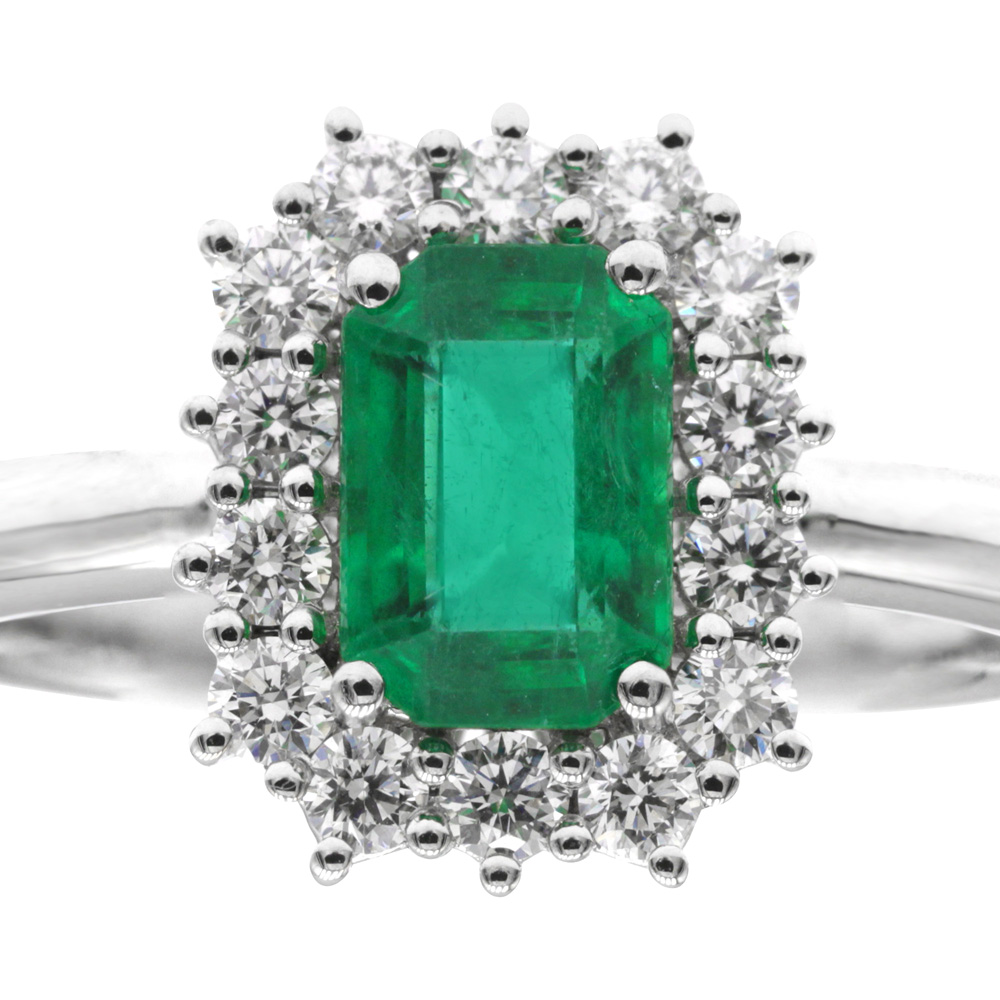 Anello in oro bianco 18K con smeraldo taglio smeraldo (ct 0,83) e diamanti taglio brillante (ct 0,35 - G - SI)