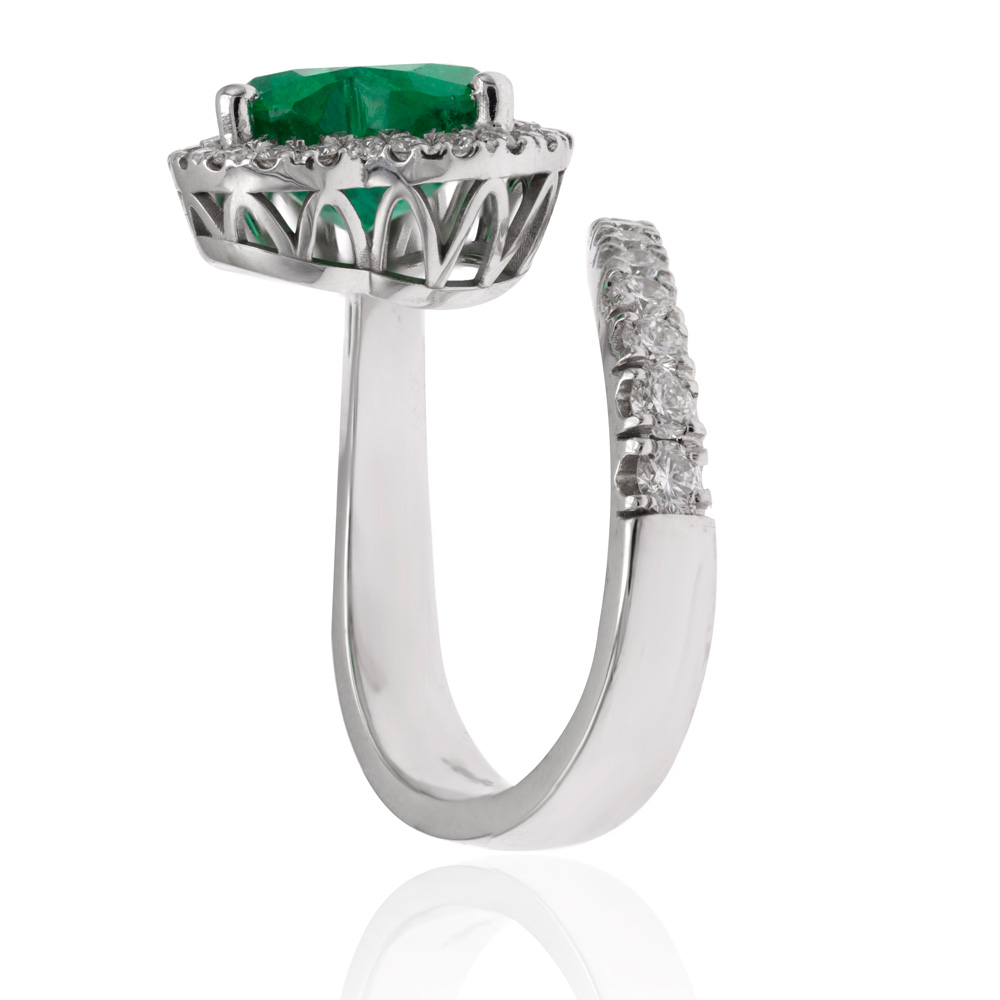 Anello in oro bianco 18K con smeraldo taglio cuore provenienza Zambia ( ct 2.57 ) e diamanti taglio brillante ( ct 0.76 - G - SI)
