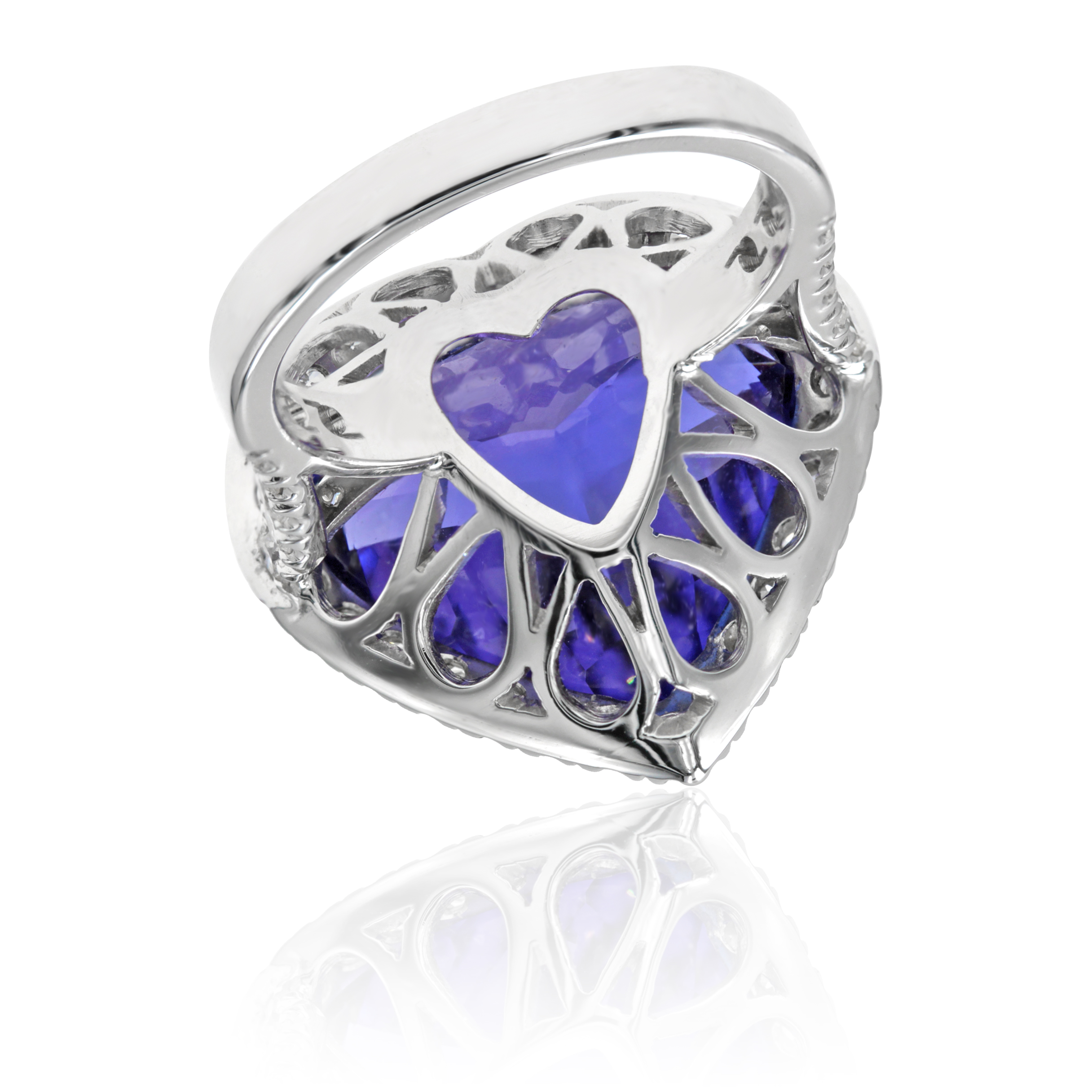 Anello in oro bianco con tanzanite taglio cuore (ct 19,68) e diamanti taglio brillante (ct 1,19)
