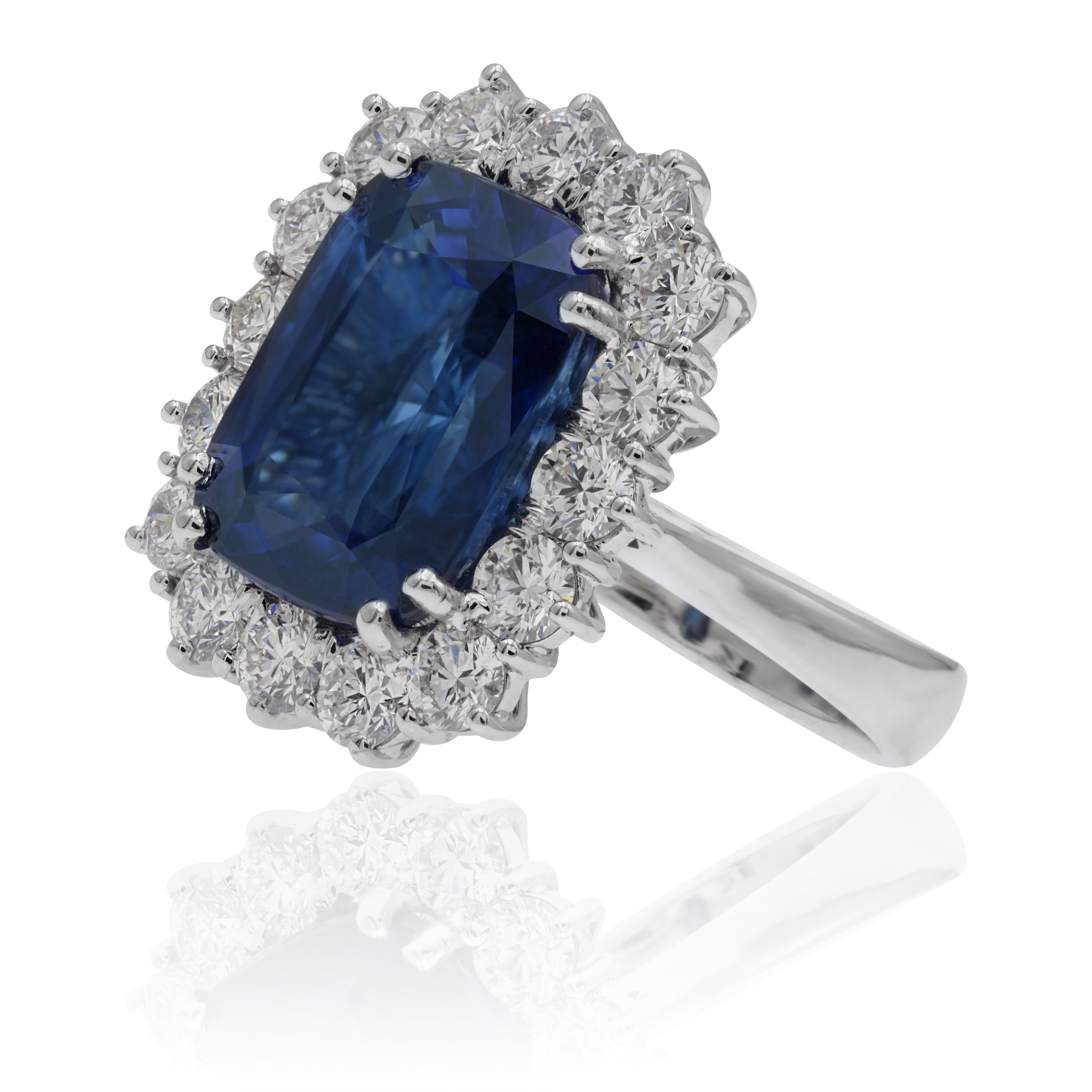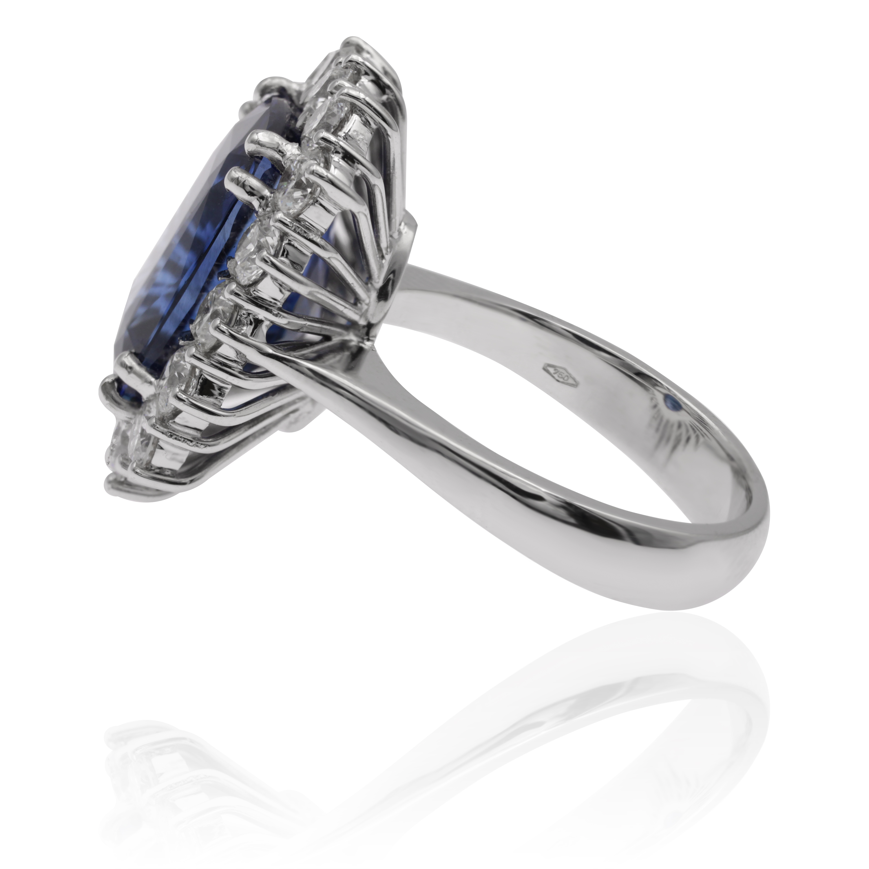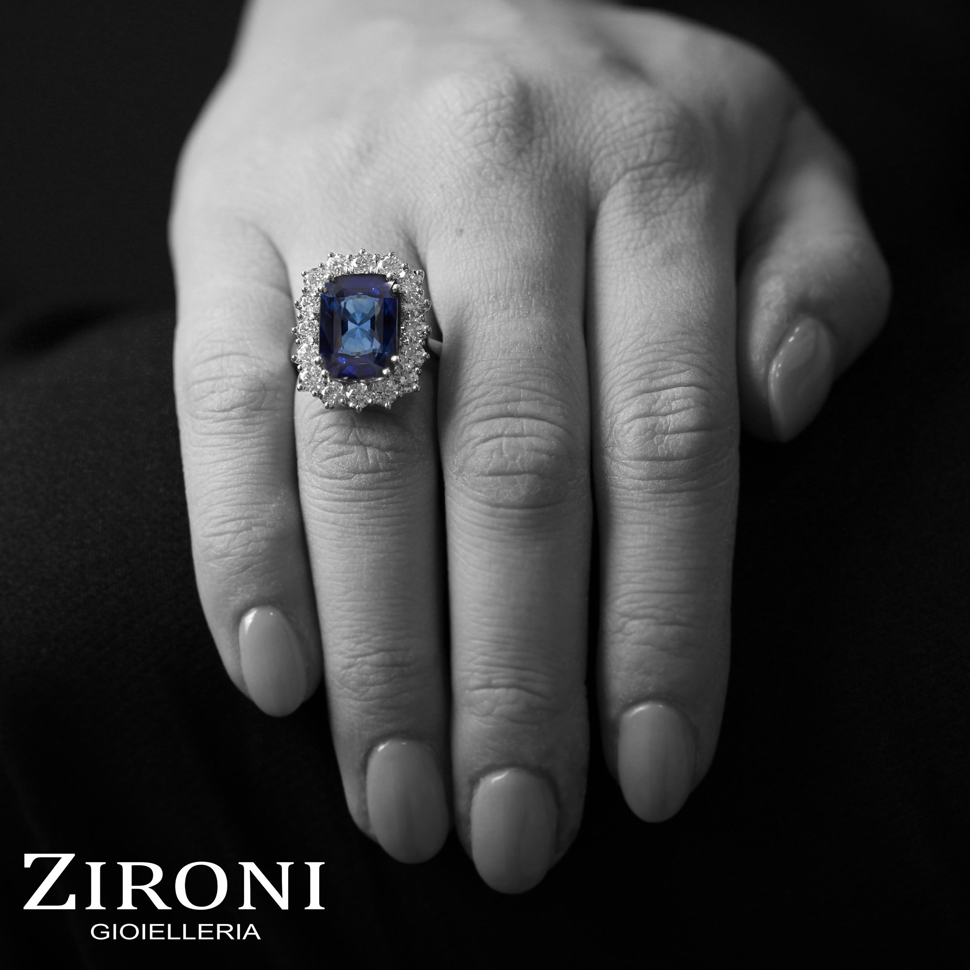 Anello in oro bianco 18K con zaffiro certificato (ct 10,27) e diamanti (ct 1,83)