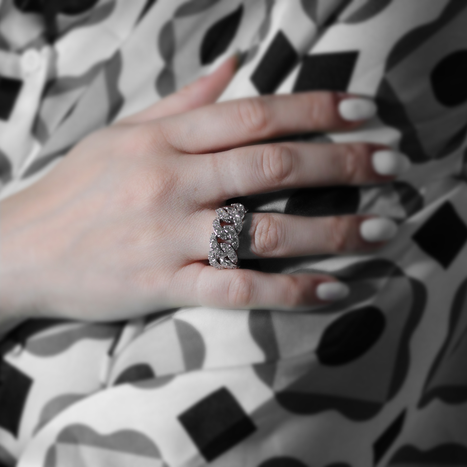 Anello in oro bianco maglia groumette con diamanti taglio brillante (ct 2,74)