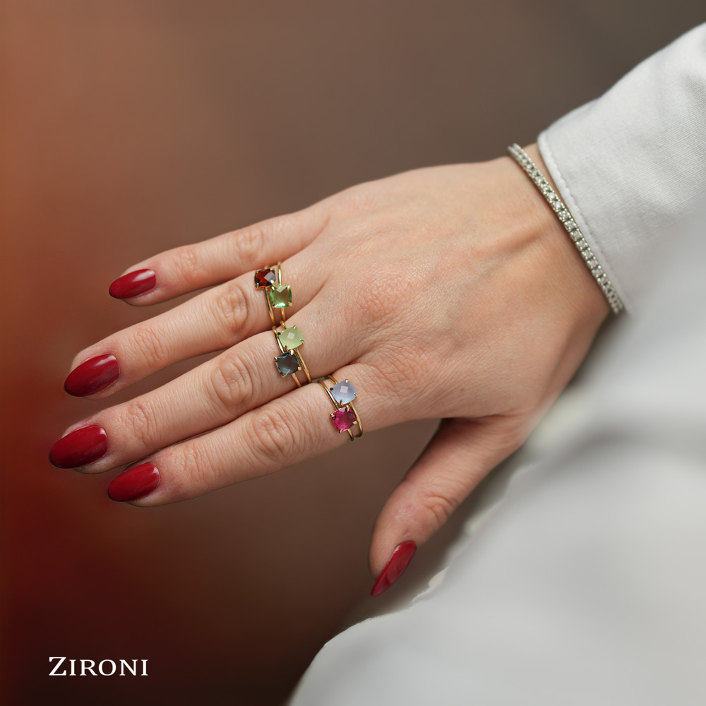 Anello in oro giallo 9K con cristallo sfaccettato azzurro