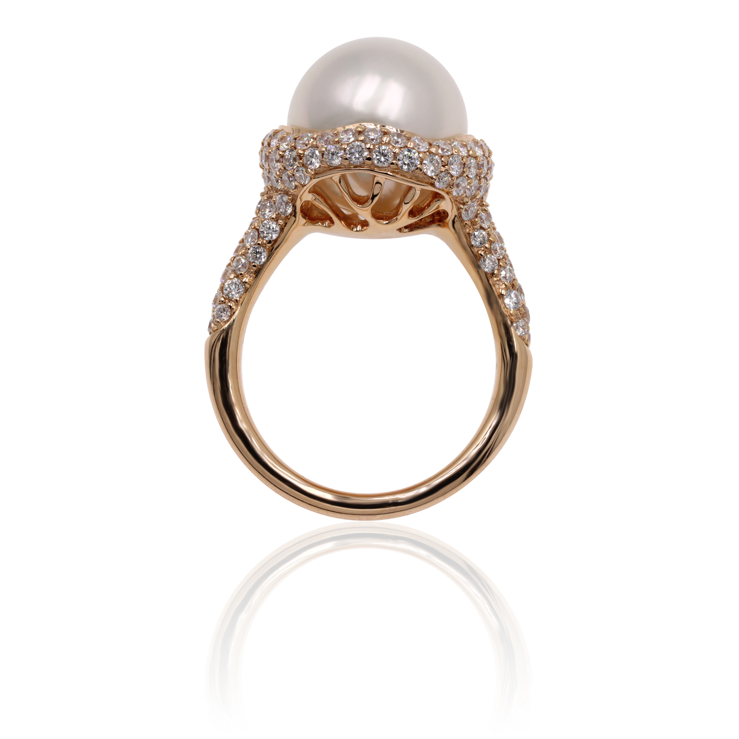 Anello in oro rosa 18 ct con diamanti taglio brillante (ct 1,33) e perla australiana (mm 12)