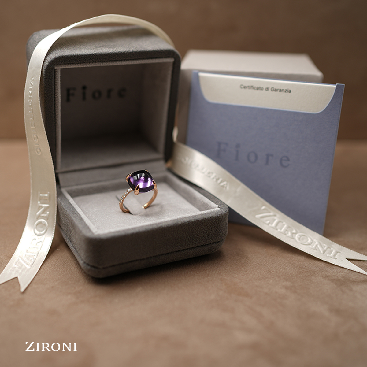 Anello in oro rosa con ametista viola e diamanti - mod. grande