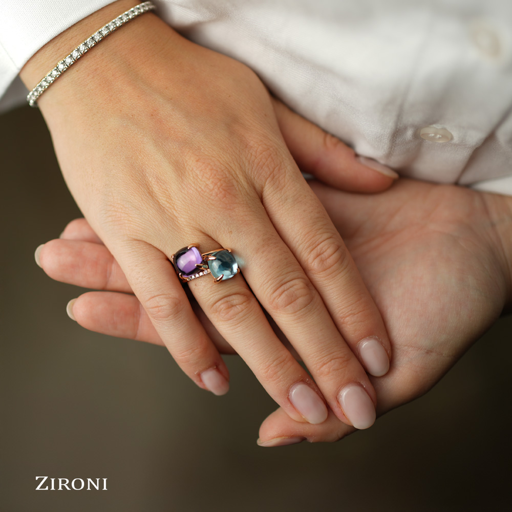 Anello in oro rosa 18K con ametista viola cabochon (ct 4,70) - mod. medio