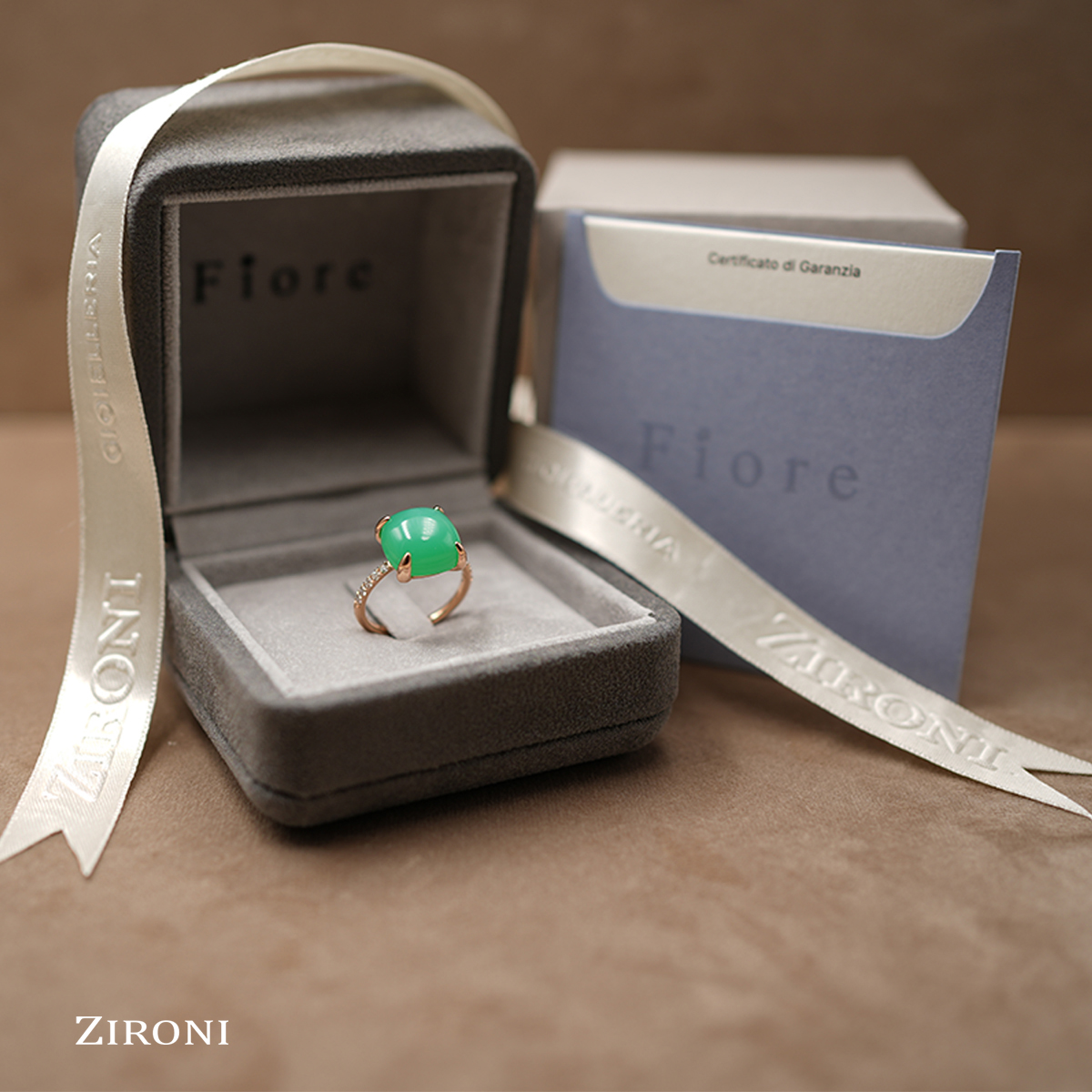 Anello in oro rosa con crisoprasio e diamanti - mod. grande