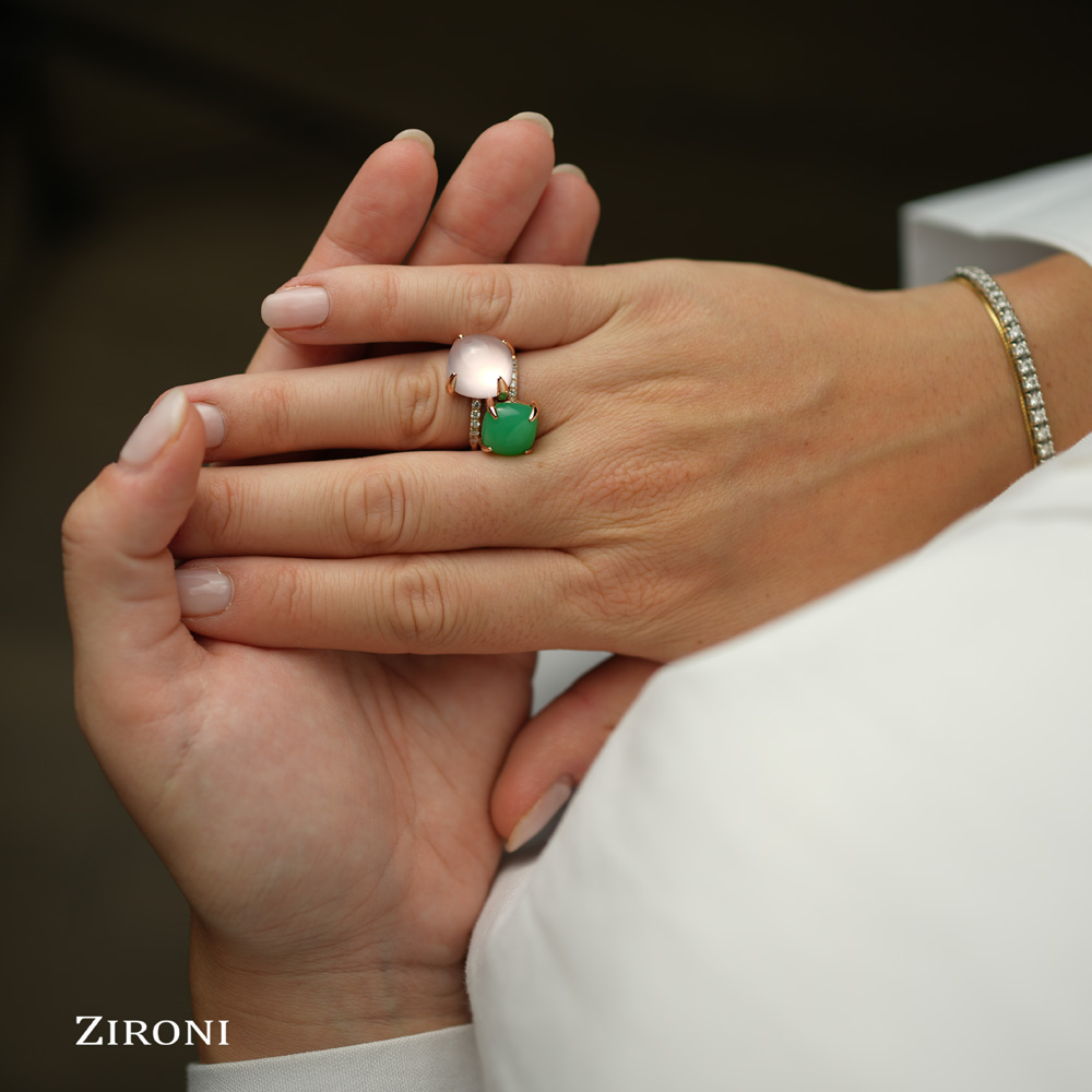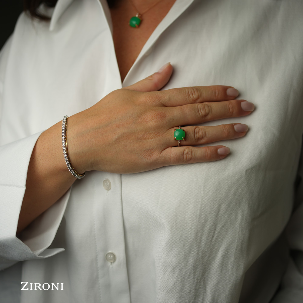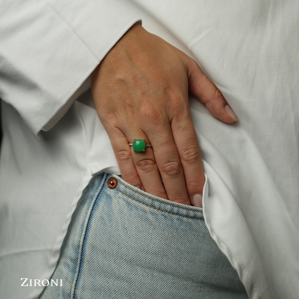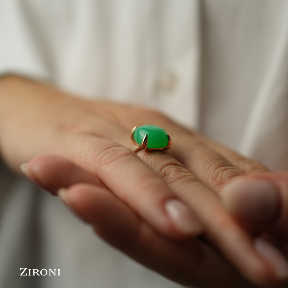 Anello in oro rosa con crisoprasio e diamanti - mod. medio