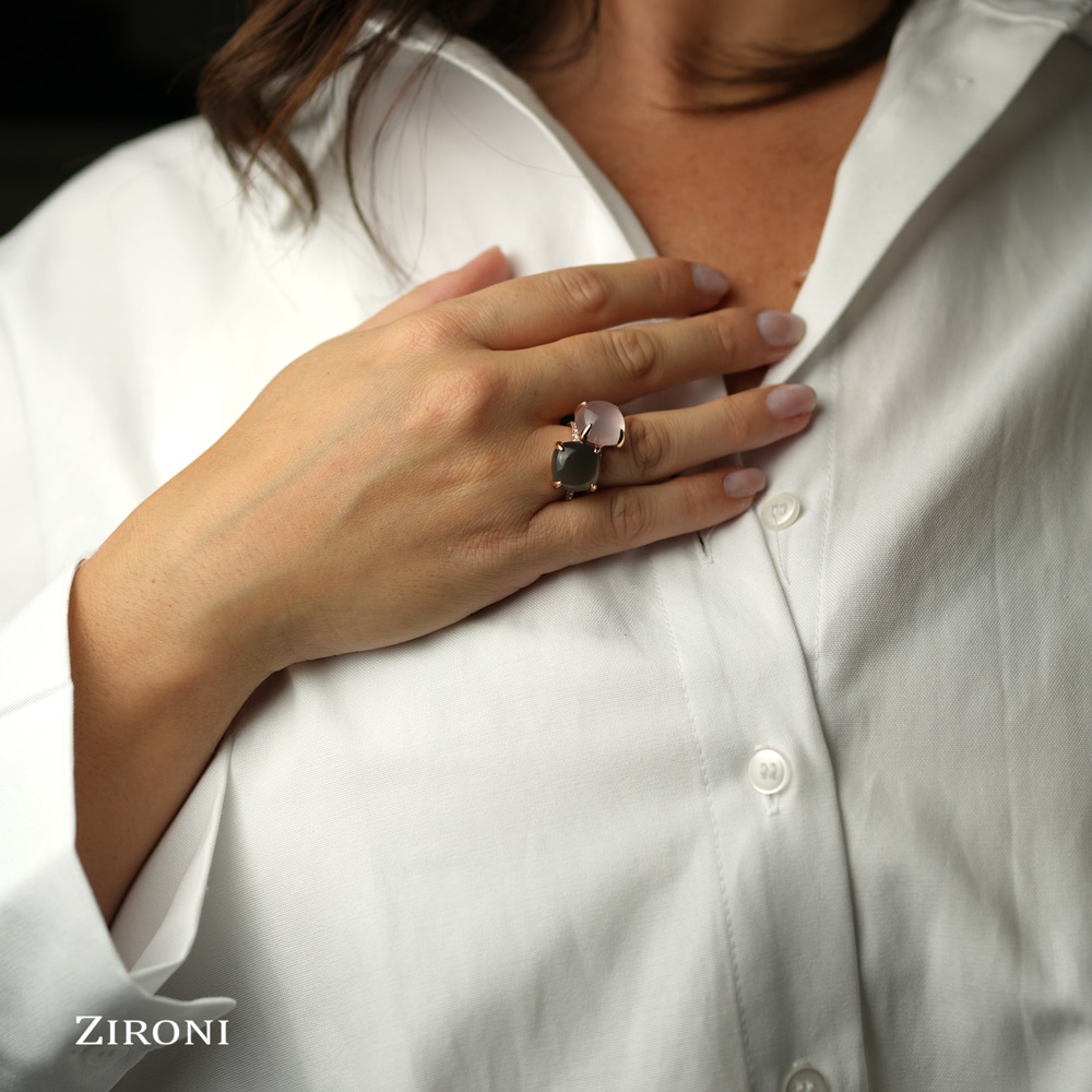 Anello in oro rosa con pietra di luna grigia e diamanti - mod. grande