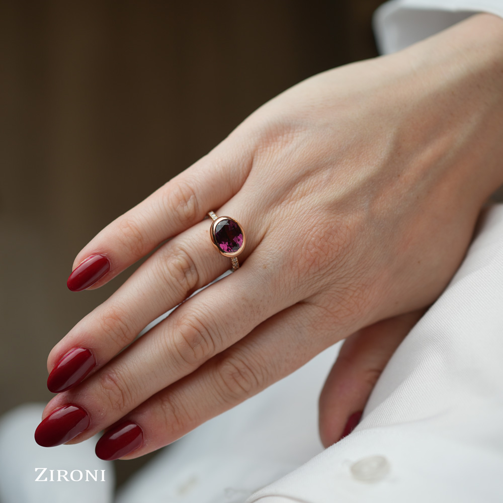 Anello in oro rosa con rodolite (3,06 ct) e diamanti (0,21 ct) - mod. medio