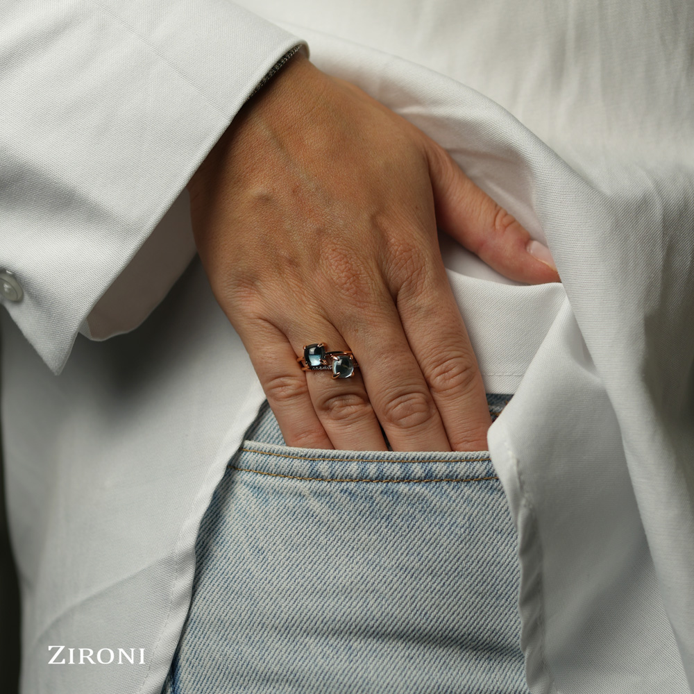 Anello in oro rosa con topazio blu london - mod. piccolo