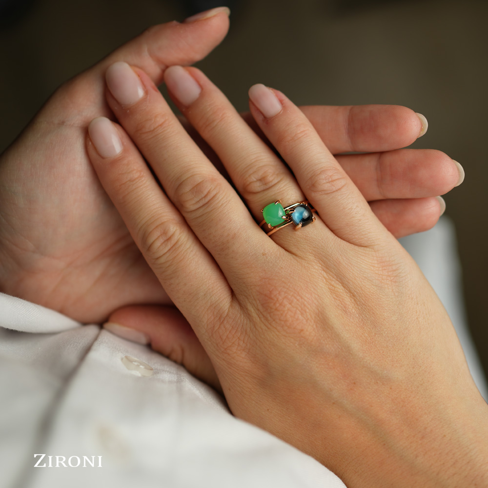 Anello in oro rosa 18K con topazio blu london cabochon (ct 2,05) - mod. piccolo