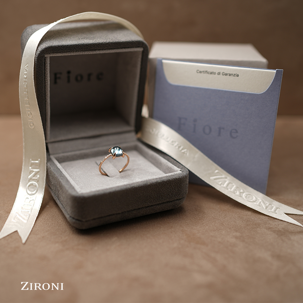Anello in oro rosa con topazio blu sky e diamanti - mod. piccolo