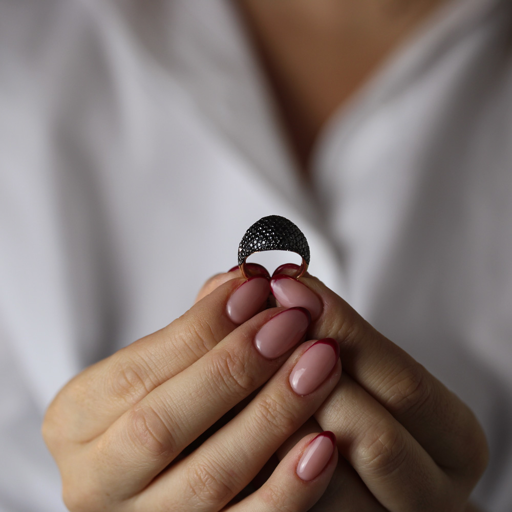 Anello mignolo in oro rosa 18K con pavè di 193 diamanti neri (ct 2.25)
