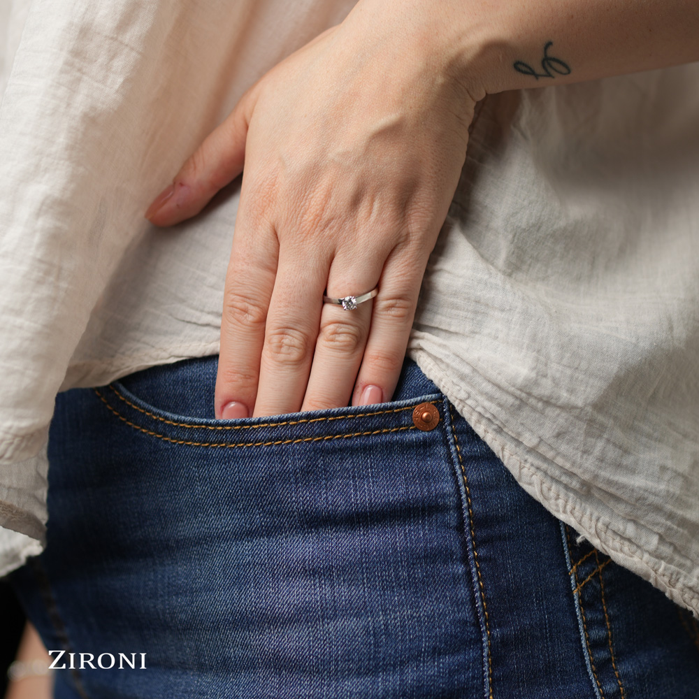 Anello di fidanzamento solitario in oro bianco 18K con diamante taglio brillante certificato GIA