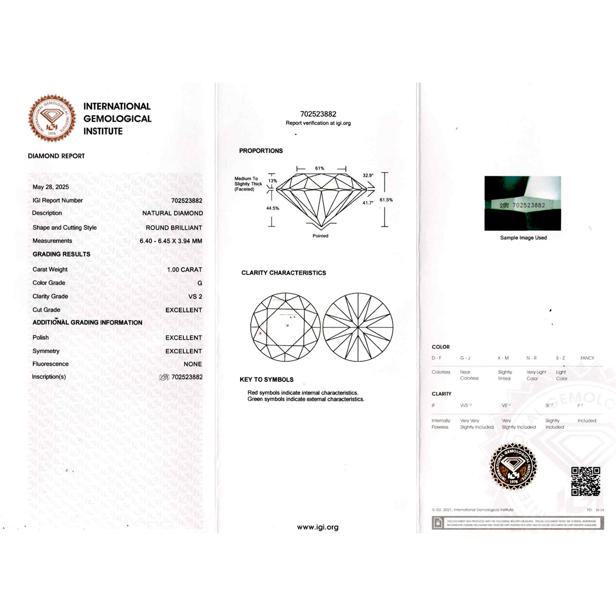Anello di fidanzamento solitario in oro bianco 18K con diamante taglio brillante certificato IGI