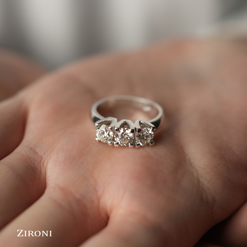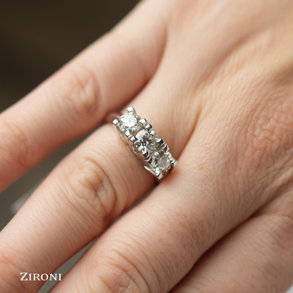 Anello trilogy in oro bianco 18K con diamanti taglio brillante certificati IGI da 0,50 ct - 0,50 ct - 0,50 ct per un totale di 1,50 ct.