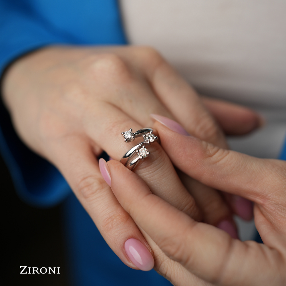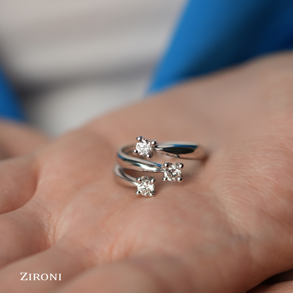 Anello trilogy in oro bianco 18K con diamanti taglio brillante (ct 0,66)