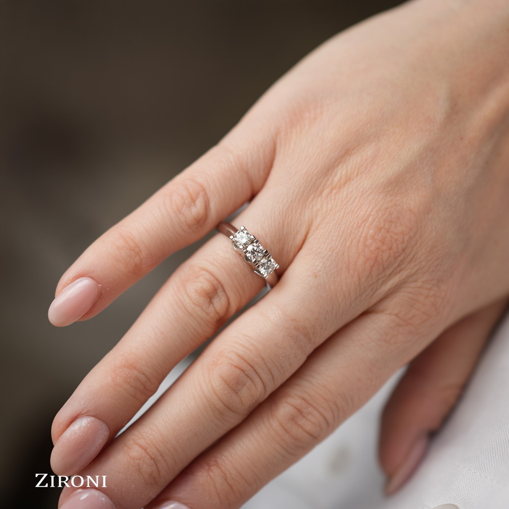 Anello trilogy in oro bianco 18K con 3 diamanti taglio brillante (ct 0,75 - G - SI)