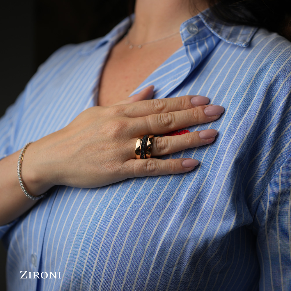 Anello tripla fascia in argento placcato rosa con polvere di carbonio nera