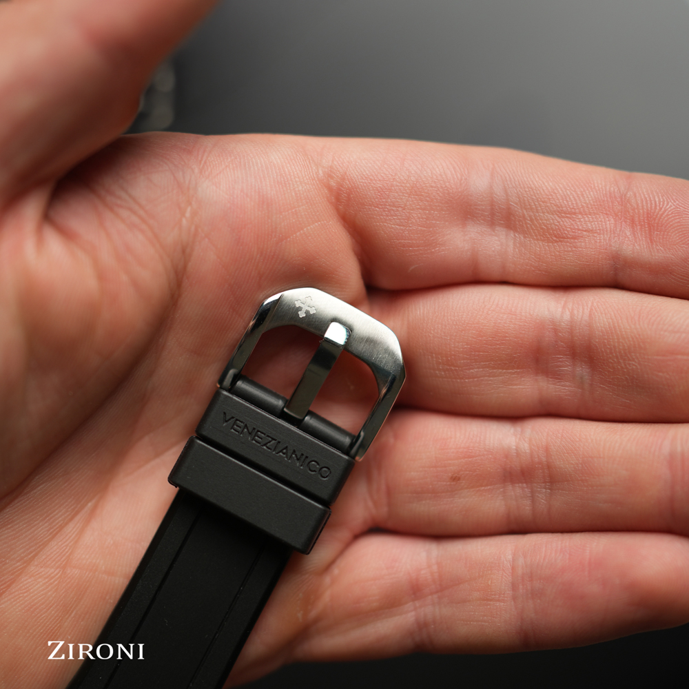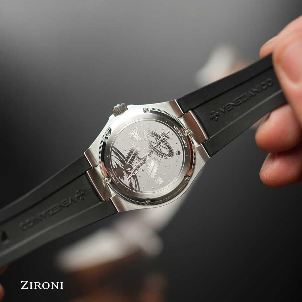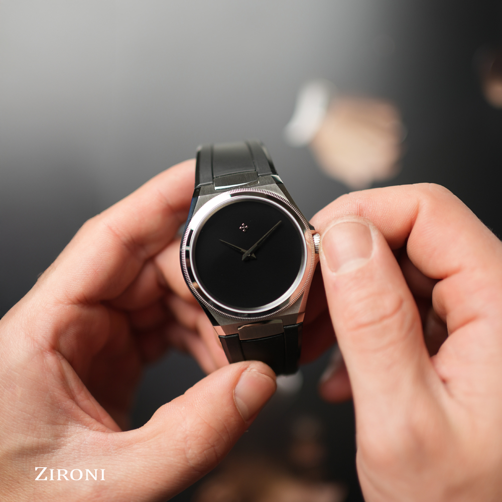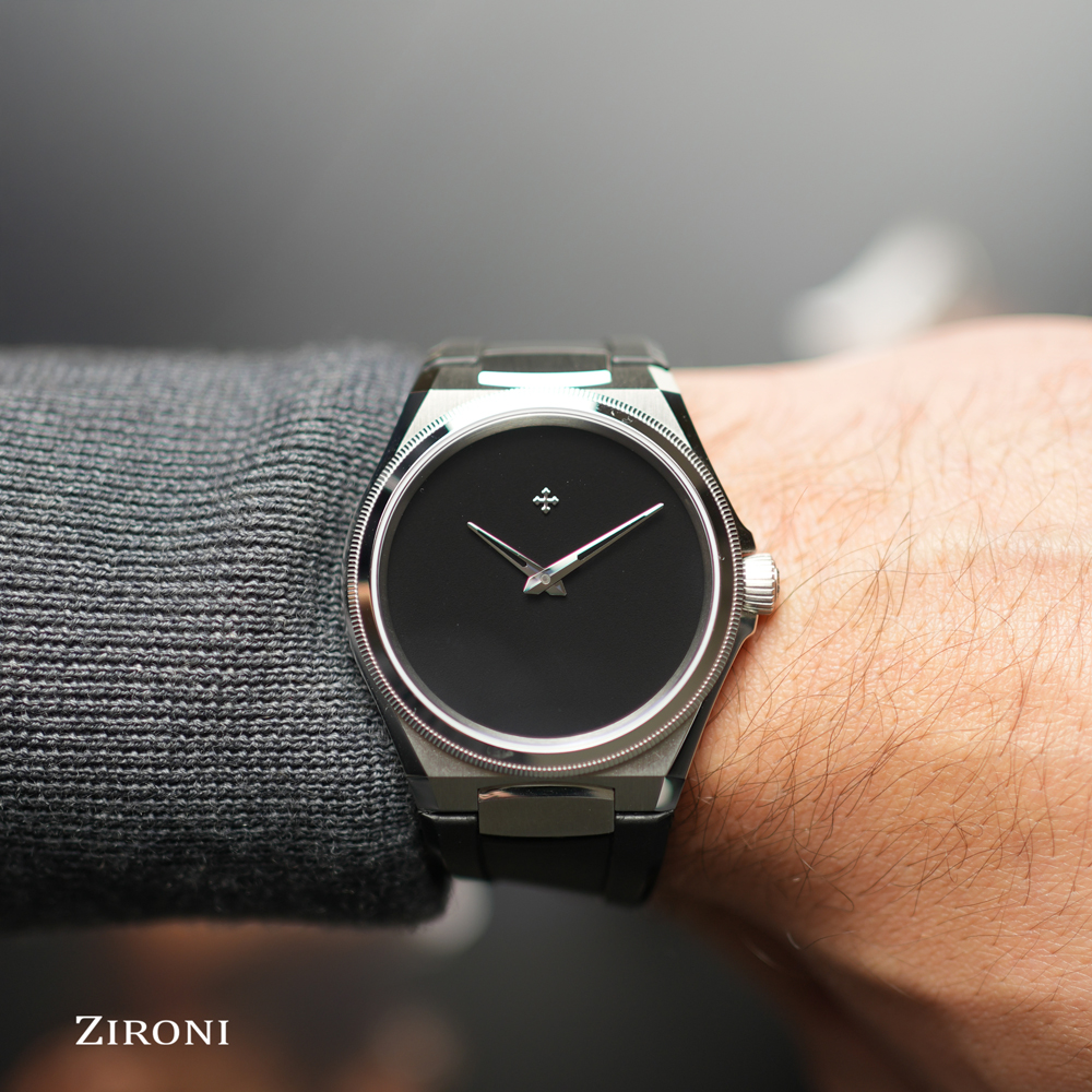 Arsenale si tinge di nero assoluto in questa variante essenziale e moderna: nasce Arsenale Ultrablack. Grazie all’impiego della vernice Musou Black™, capace di assorbire il 99,4% della luce, il quadrante raggiunge una profondità unica, enfatizzando l’estetica minimale del design. Le linee pulite della cassa e le finiture in acciaio spazzolato e lucido conferiscono un carattere deciso e contemporaneo, facendo di Arsenale Ultrablack un segnatempo che esalta la purezza del minimalismo unita all’innovazione tecnica.