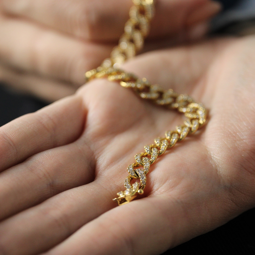 Bracciale groumette in oro giallo con diamanti (ct 3,30)