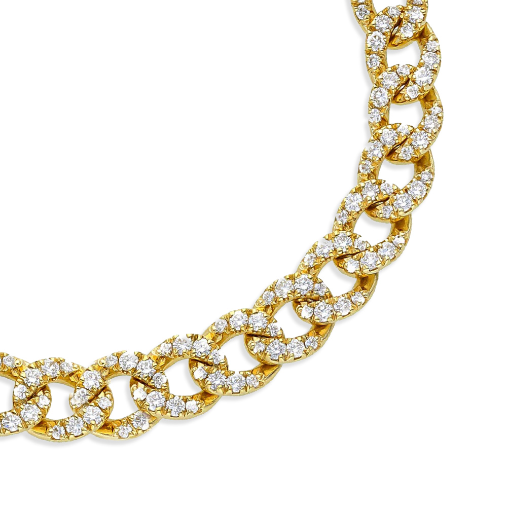 Bracciale groumette con 34 maglie in oro giallo 18K con diamanti taglio brillante (ct 3,30 - G - SI) - 17 cm
