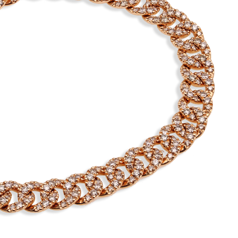 Bracciale groumette in oro rosa 18K con diamanti brown taglio brillante (ct 3,15)