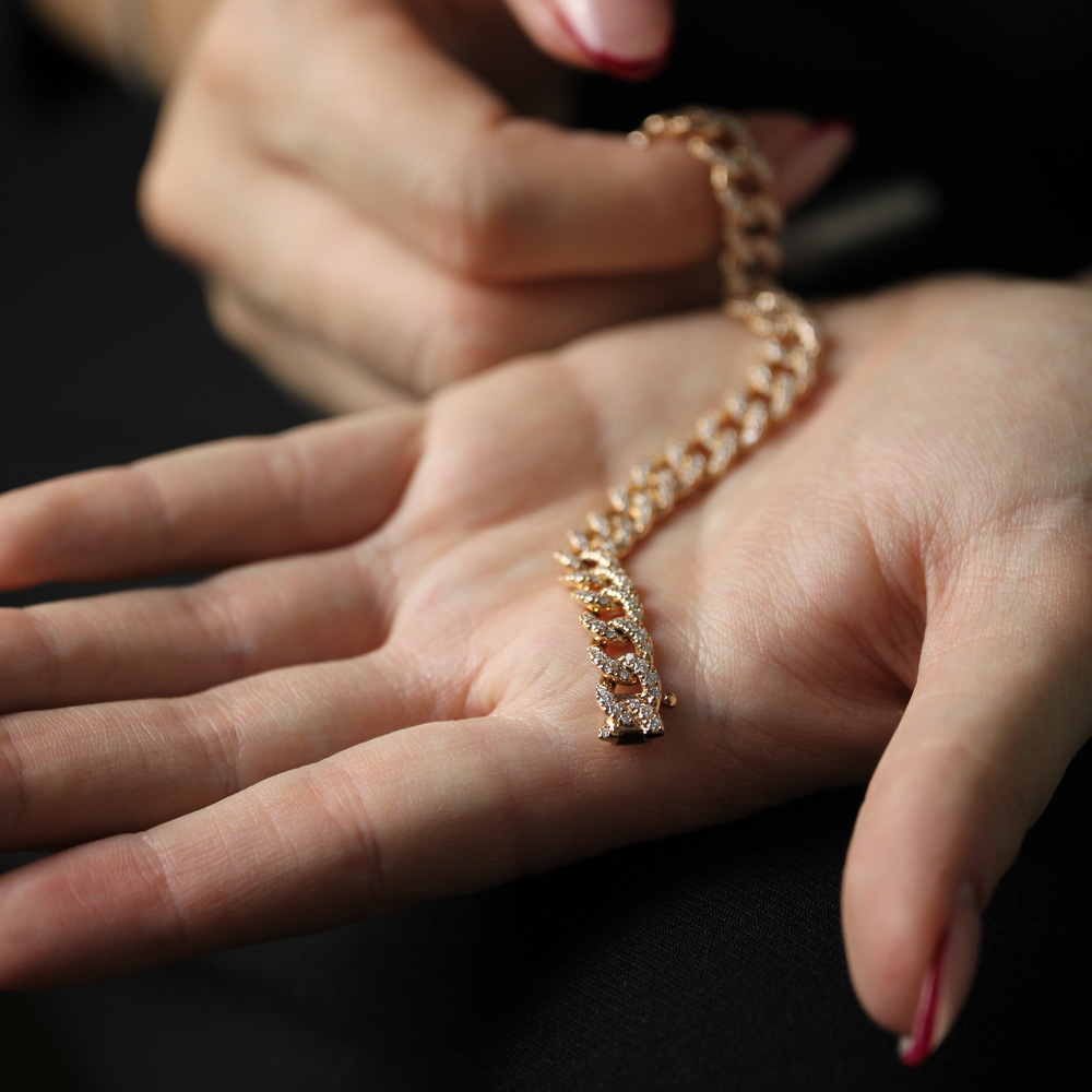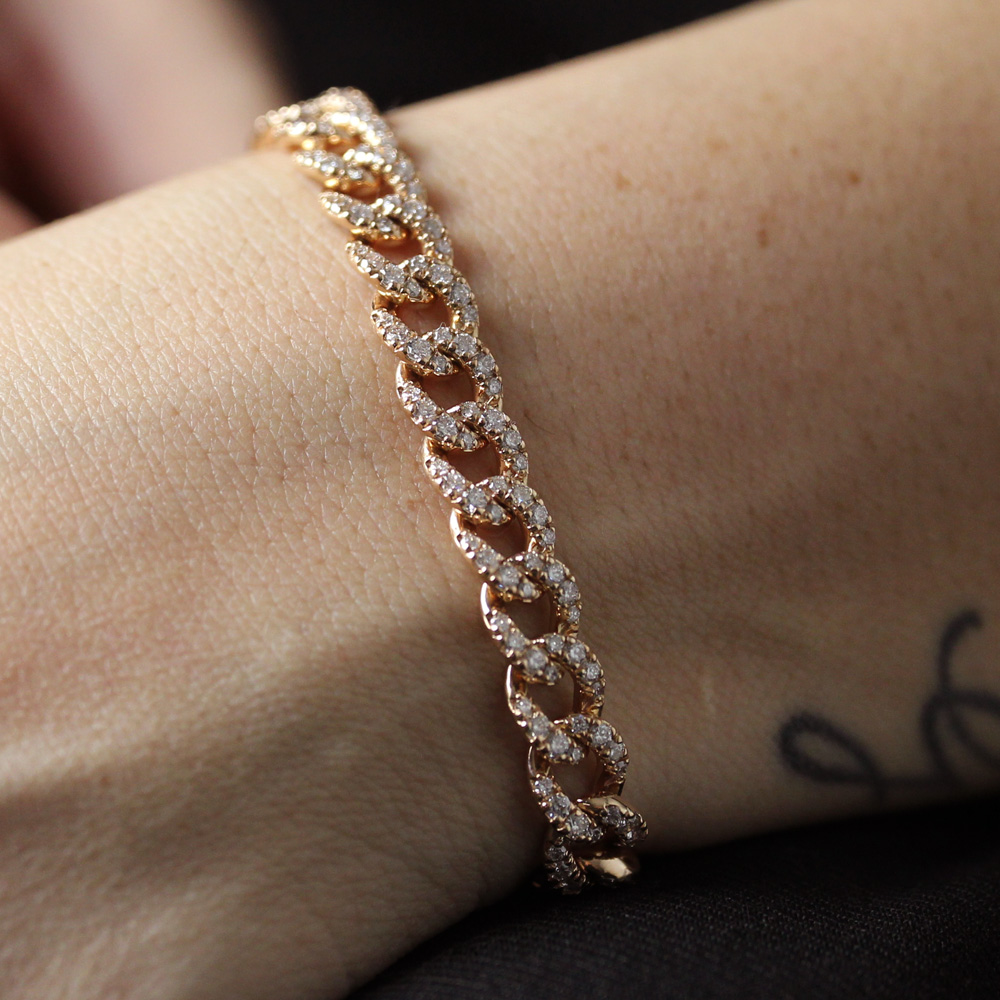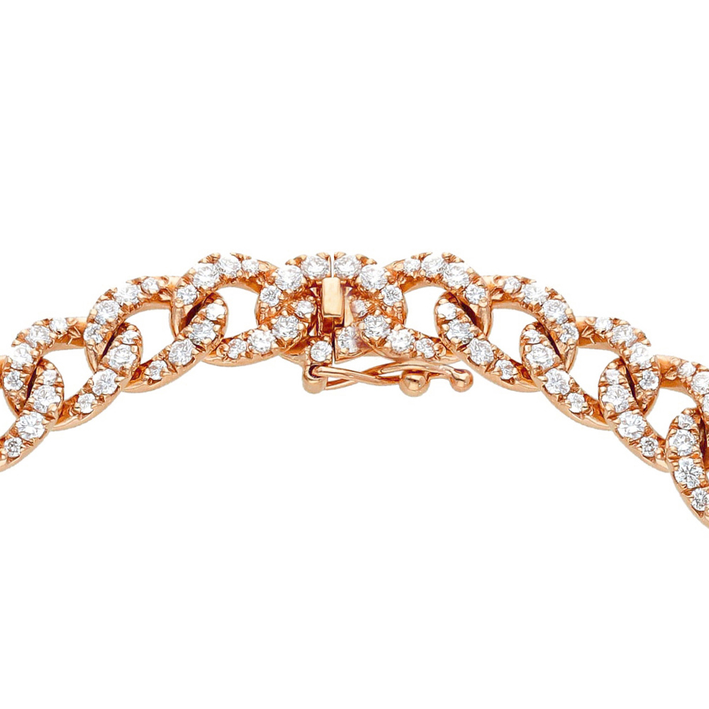 Bracciale groumette in oro rosa 18K con 34 maglie e diamanti taglio brillante (3,33 ct - G - SI) - lunghezza 18 cm