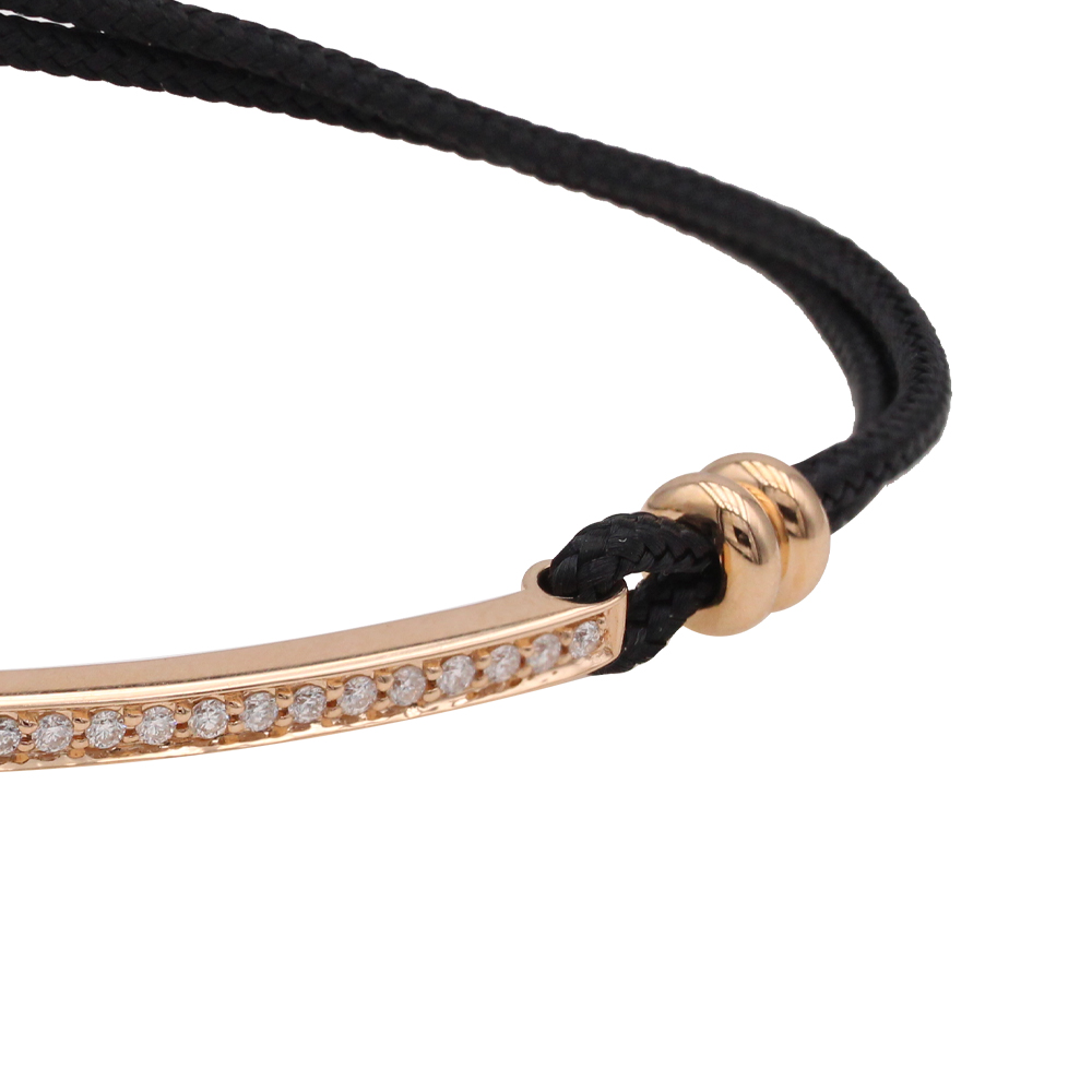 Bracciale con lastrina rigida centrale in oro rosa 18K e 31 diamanti taglio brillante (0,25 ct) - cordino nautico con chiusura in oro rosa 18K