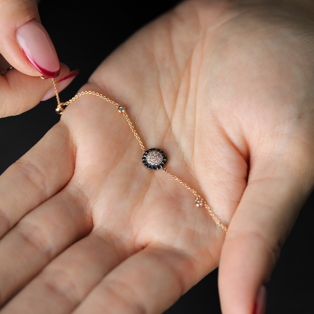 Bracciale in oro rosa con diamanti bianchi e neri (0,28 ct)