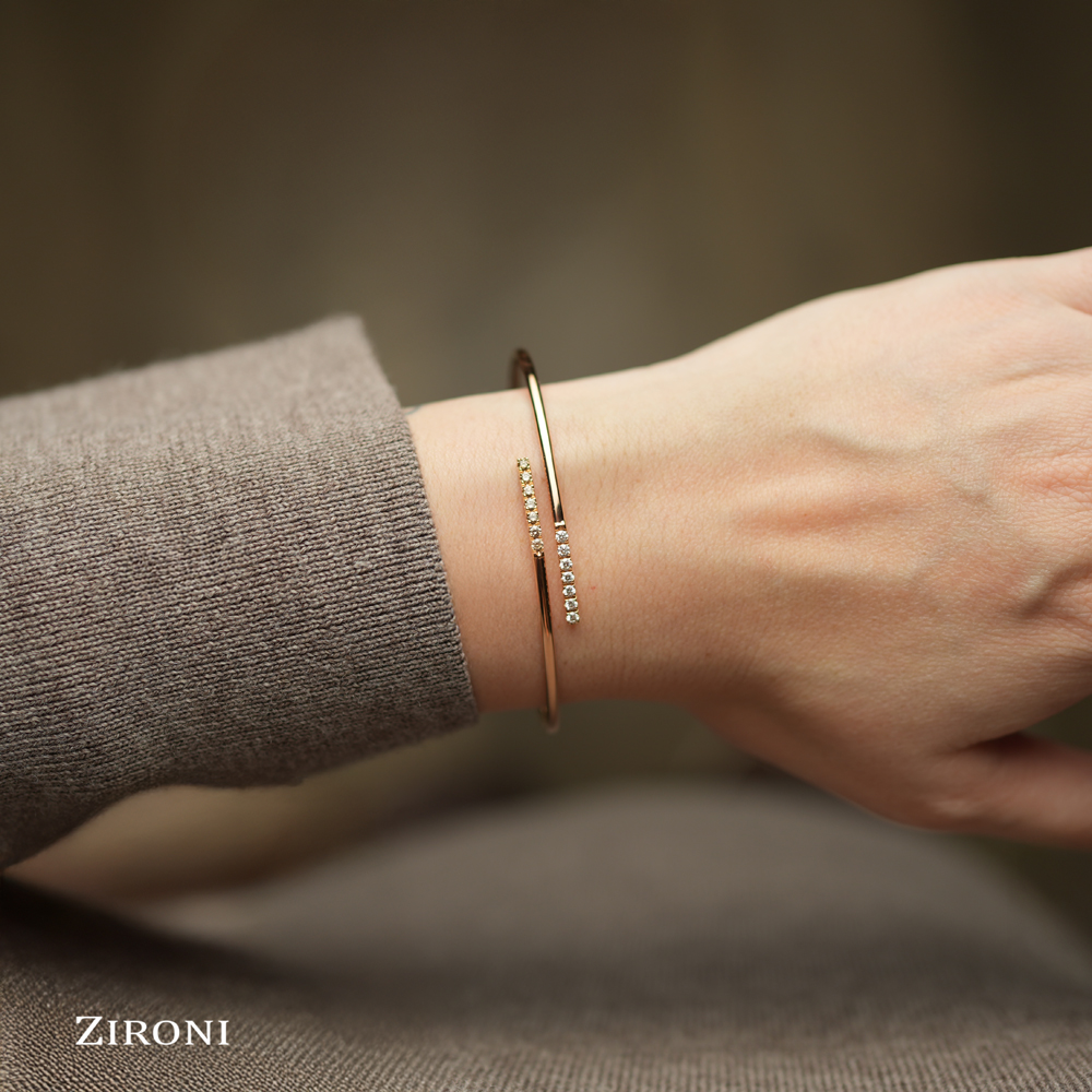 Bracciale rigido in oro rosa 18K con una fila di 7 diamanti taglio brillante (ct 0,17 - F - SI) e una fila di 7 diamanti brown taglio brillante (ct 0,17)